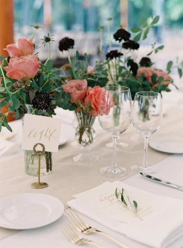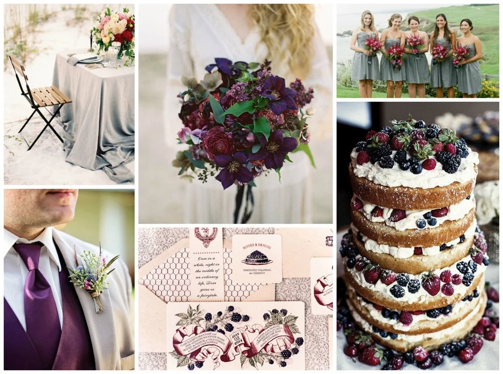 For a formal affair, winter berries with?hues of grey, from charcoal to silver sheen, look great and add a touch of decorum to your wedding. Pair with pale greens for a lighter?feel and keep your table decor clean and structured for a sleek finish.