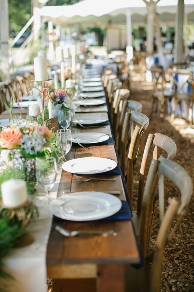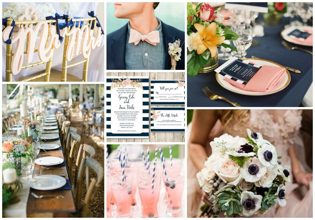 If you want to go?a little more girly,?then this pairing is the one for you. Blush tones allow you to play with pink without being overpowered by?the colour?and the navy acts as a sharp masculine edge’so your husband-to-be won’t be too put off! This palette looks stunning when played off natural surfaces, however if it’s more traditional you want then emphasise the navy and add touches of gold.