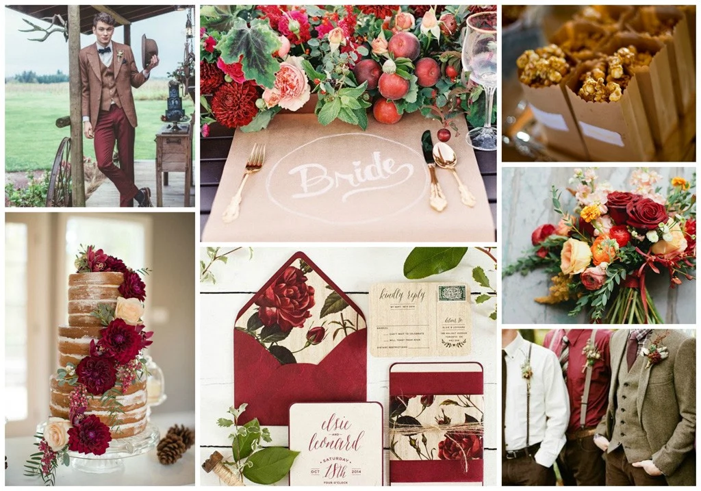 Burgundy is always an autumnal colour trend, but this year it has been particularly evident on the runways for this season. It warms?pale skin tones and keeps its fervent vibrancy in our dull Irish weather. Perfect for a country wedding, keep it tonal with nut brown, cream and fawn tones with bursts of burnt yellow and oranges. Use tweeds, hessian and cotton?fabrics with delicate glass and tableware for a harmonious feel.