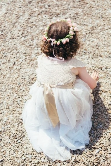 THE CREW Her dress Claire Pettibone. Bouquets and flower crowns Wild. Cake O’Carroll’s Cakes