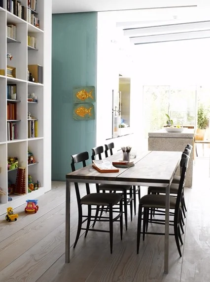 The spacious three-storey Victorian residence provides an ideal place to raise a family, although configuring the re-design was no easy task. The rear ground floor was extended sideways and into the garden, to allow enough room for all the living areas on one floor. Each zone of the open-plan house flows fluently, but can be conveniently closed off by hidden sliding doors.