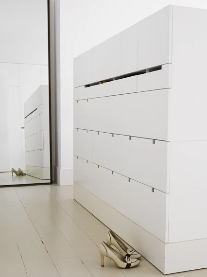 The design’s success owes as much to the clever layout as it does to the functional details, as virtually every item in the house has a designated home. Clothes hang behind pristine cupboards, shoes slot into drawers, and even the loo-roll sits snugly it its perfectly carved ledge. It’s safe to say, we’re rather jealous.