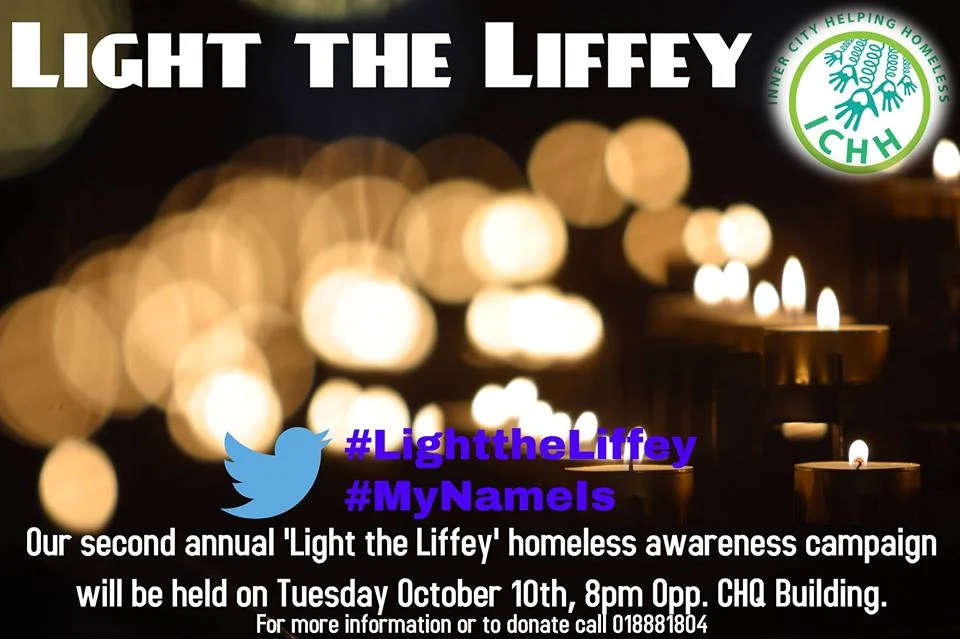 ‘Light the Liffey’ is a yearly awareness campaign lead by Inner City Helping Homeless, highlighting and bringing together all of those who are trapped by homelessness. With over 3,000 children and over 5,000 adults now in emergency accommodation across the country ‘Light the Liffey’ aims to bring the city together standing in solidarity on the?housing/homeless crisis. Inner City helping Homeless are teaming with the?#MyNameIs?campaign this Tuesday, October 10th, to continue raising awareness surrounding homelessness. Donations are welcome on the night. For more info click here.