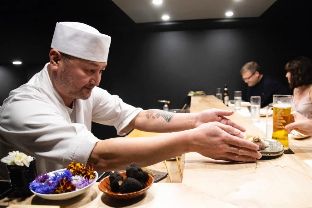 In Cork, Takashi Miyazaki has been serving aged fish as part of his tasting menu in Ichigo Ichie. He says it’s a bit different to ageing meat: “It’s best not to dry age it. Fish has a different texture to beef. There is no connective tissue to break down. To age the fish, the most important thing is to keep it moist and at a consistent temperature.”