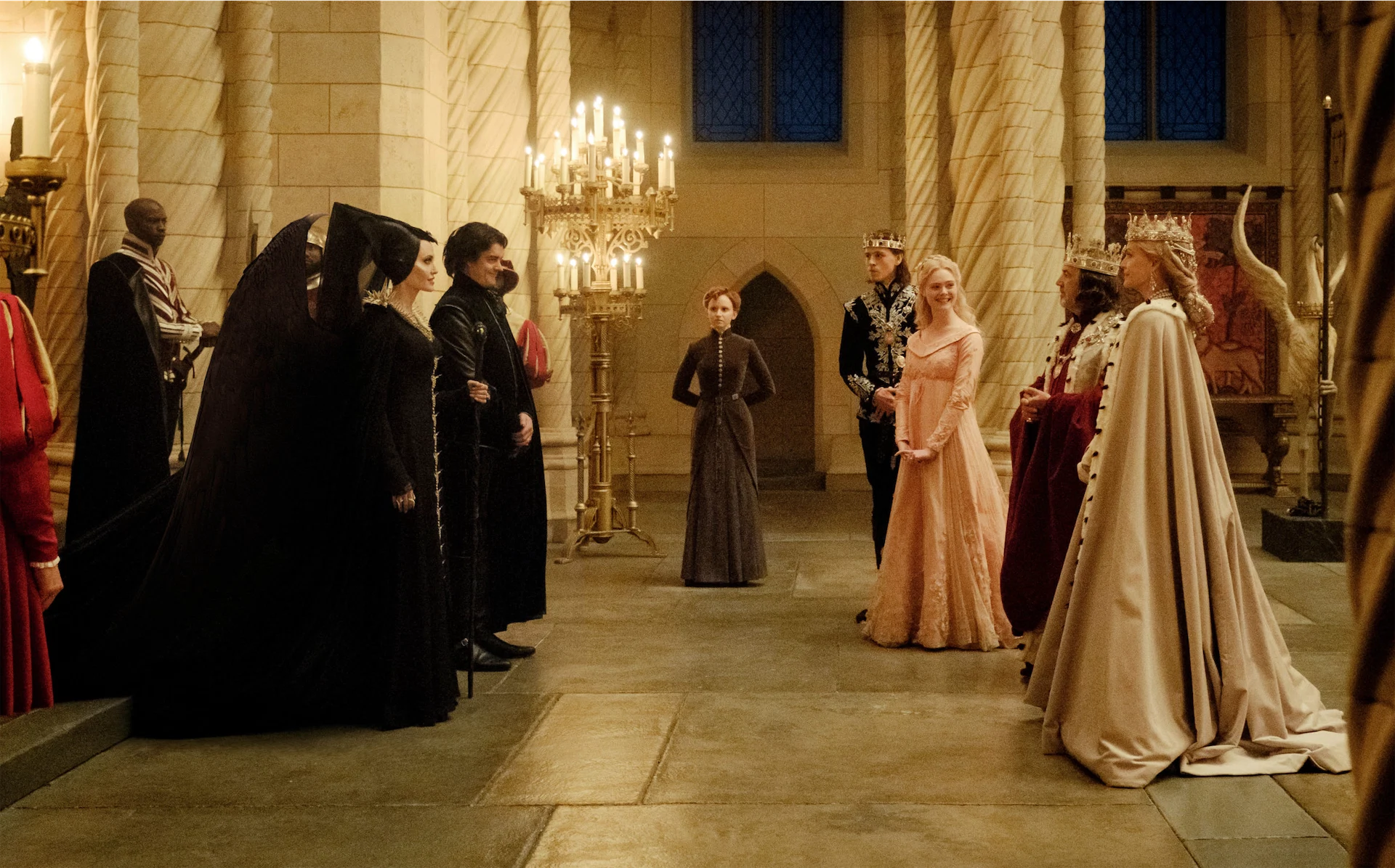 Once again starring Angelina Jolie, Elle Fanning, Sam Riley, Imelda Staunton and Juno Temple, the sequel sees new cast members Michelle Pfeiffer as Queen Ingrith, Irish actress Jenn Murray (pictured above centre; read our exclusive interview in the November issue of IMAGE Magazine, out Thursday, October 17) as Queen Ingrith’s aid Gerda, Harris Dickinson as Prince Phillip, and Chiwetel Ejiofor.