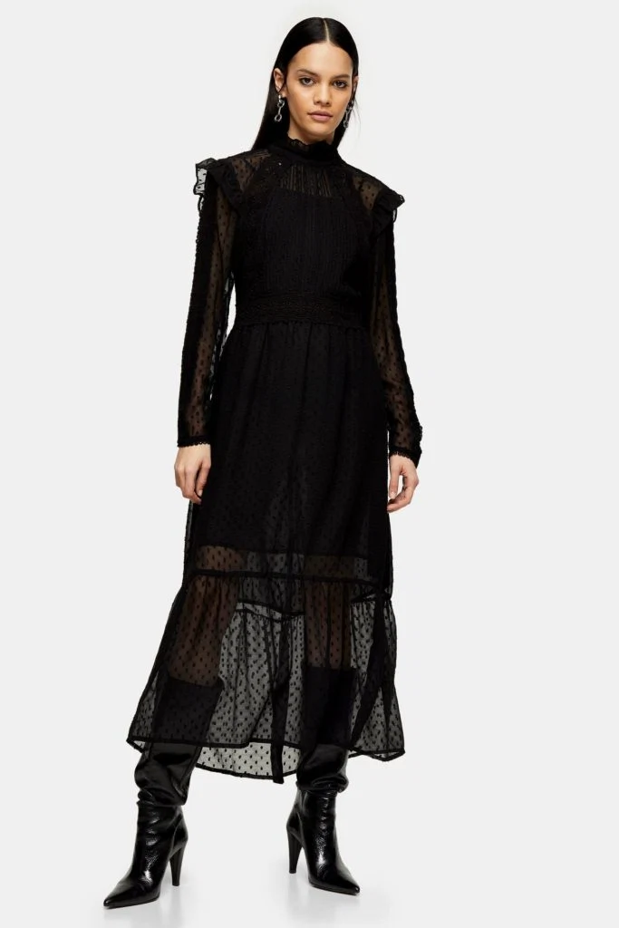 IDOL black pintuck lace insert midi dress, €68 at Topshop