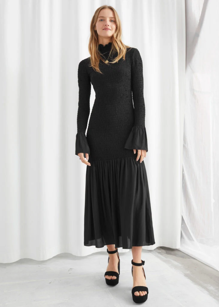 Smocked ruffle hem midi dress, €129 at & Other Stories