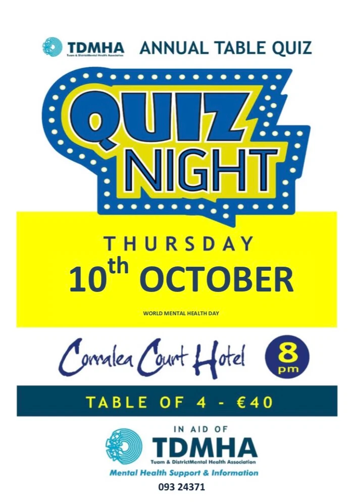 All proceeds go towards TDMHA, which provides mental health support and information tot hose who need it. A table of four is €40.