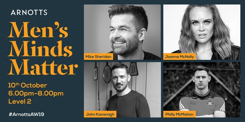 Arnotts will be hosting a panel discussion, Men’s Minds Matter on October 10th to highlight the importance of your mental wellbeing. This event is specifically aimed at men, featuring Philly McMahon, comedian Joanne McNally, Mike Sheridan and MMA coach John Kavanagh on the night.