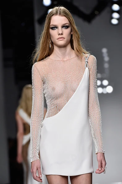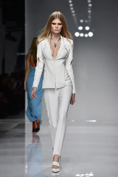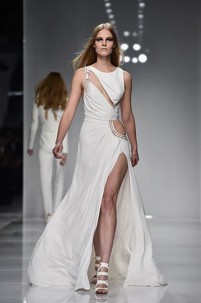 Donatella called it an “athletic couture” collection – sport details included rope detailing and high-vis, combined with bold colours, cut-outs, thigh high splits and a general appreciation of the female form. “This collection is one of the most complex, sophisticated and technically accomplished we have ever created,? she said. ?It has been hard work, but also an absolute pleasure to see the talents in the atelier push themselves to create the ultimate.?