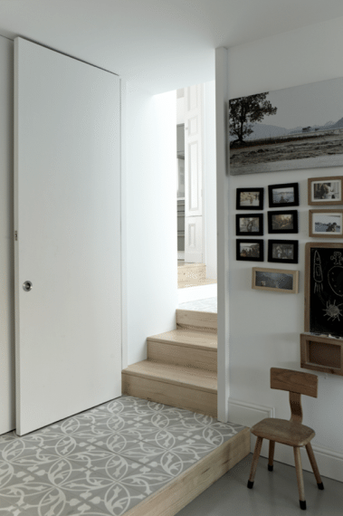 Maria decided to open up the two living rooms with as wide an opening as possible and to lengthen the rear casement window to the ground. ?Now you can step through a ?link? – which is fully glazed and offers views to the garden and light to the kitchen – into the playroom,? Maria explains.