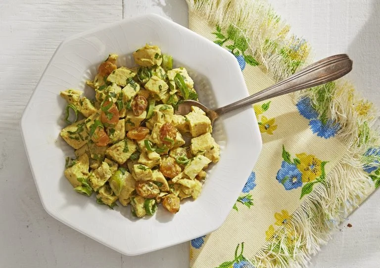 This flavourful chicken salad is made with poached chicken, curry powder, lemon, mayonnaise and sour cream. It’s best served chilled with naan bread. (Country Living)