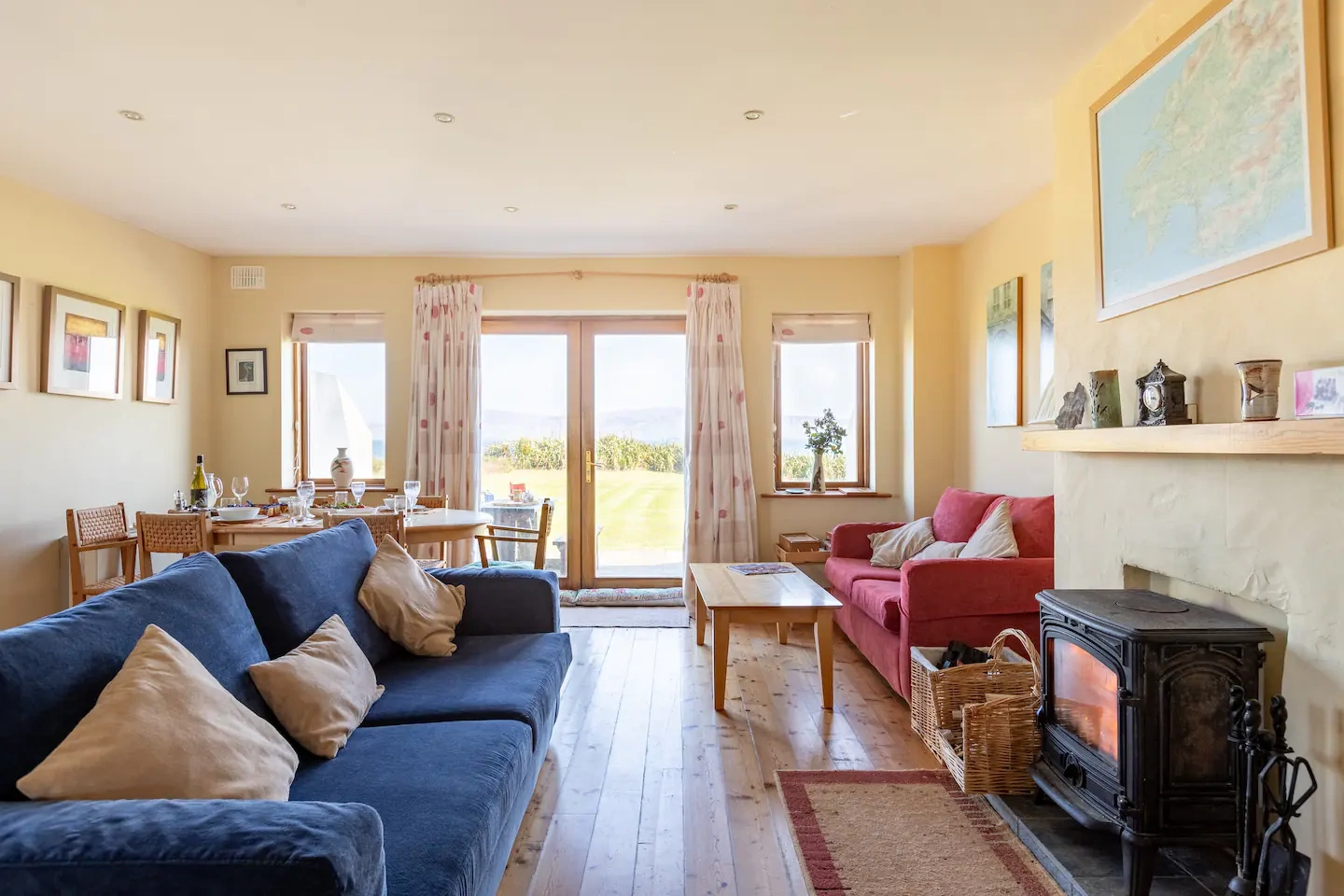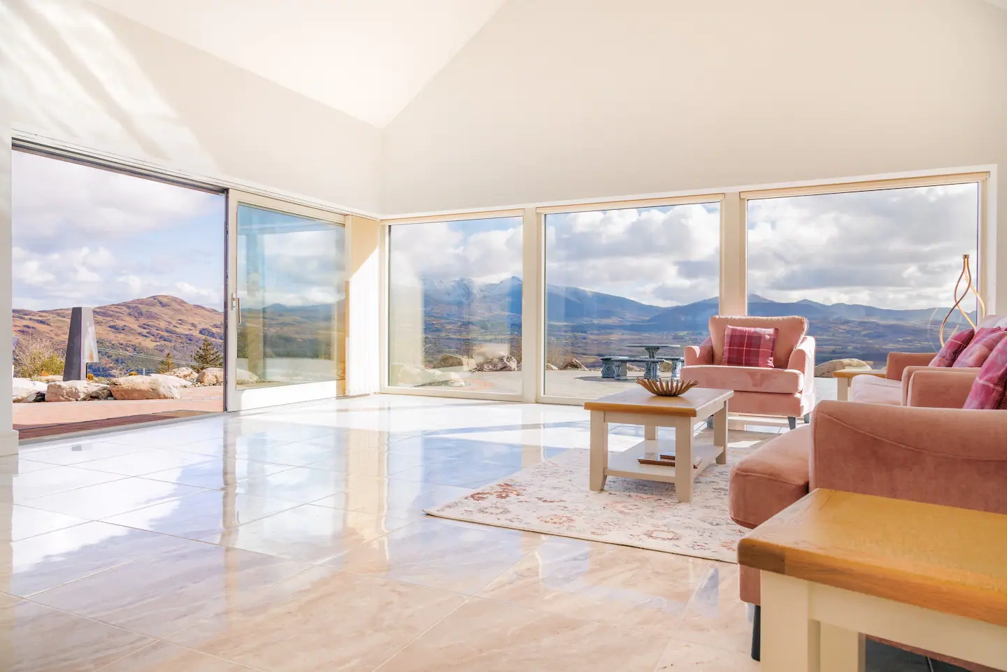 Hiking enthusiasts will love Sheila’s Cottage in Co Kerry which offers spectacular panoramic views of MacGillycuddy Reeks and Ireland’s highest mountain, Carrauntoohill. Flooded with golden sunshine by day and twinkling stars by night, the addition of several large windows means that you can just sit back and take it all in, whatever the time.