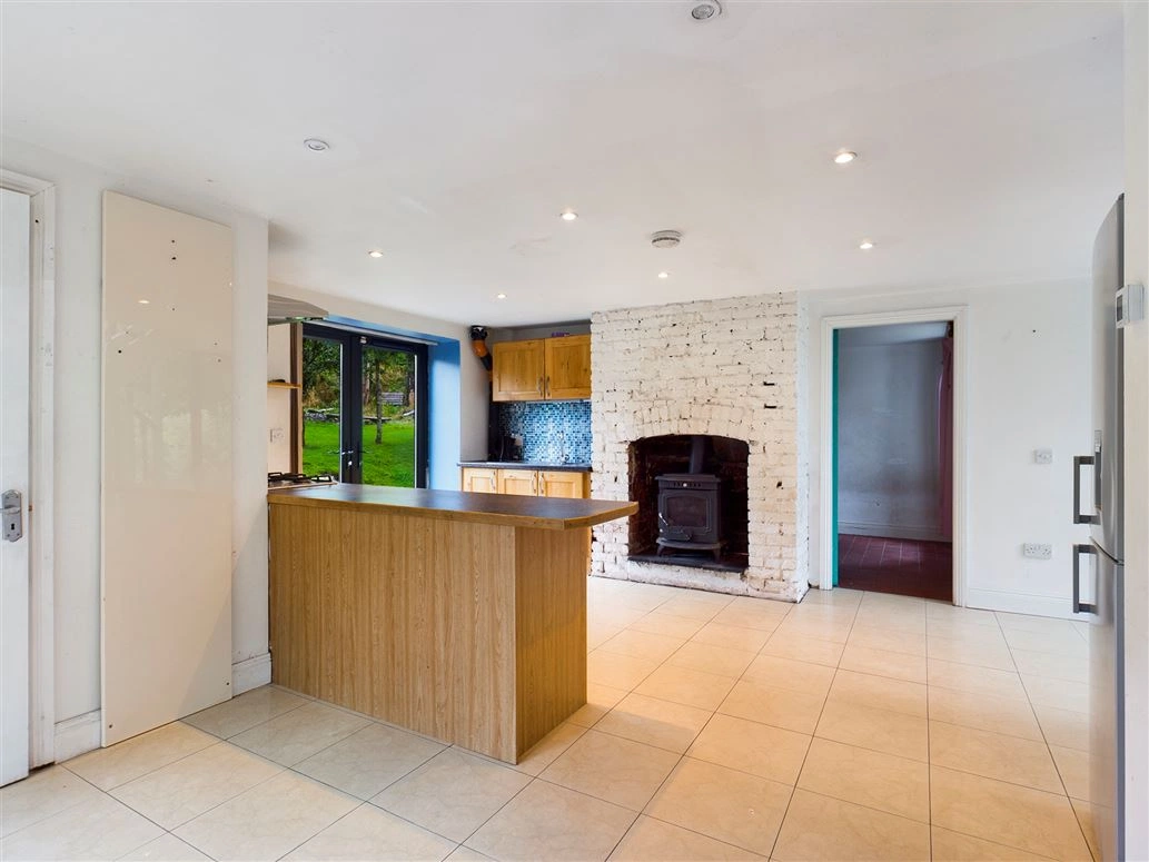 A handsome painted staircase leads to the upstairs which features a bright and spacious landing area, while the kitchen, which has been fully tiled and fitted, can be found downstairs. This area also has the added benefit of a solid fuel stove to bring warmth on those cold winter evenings.