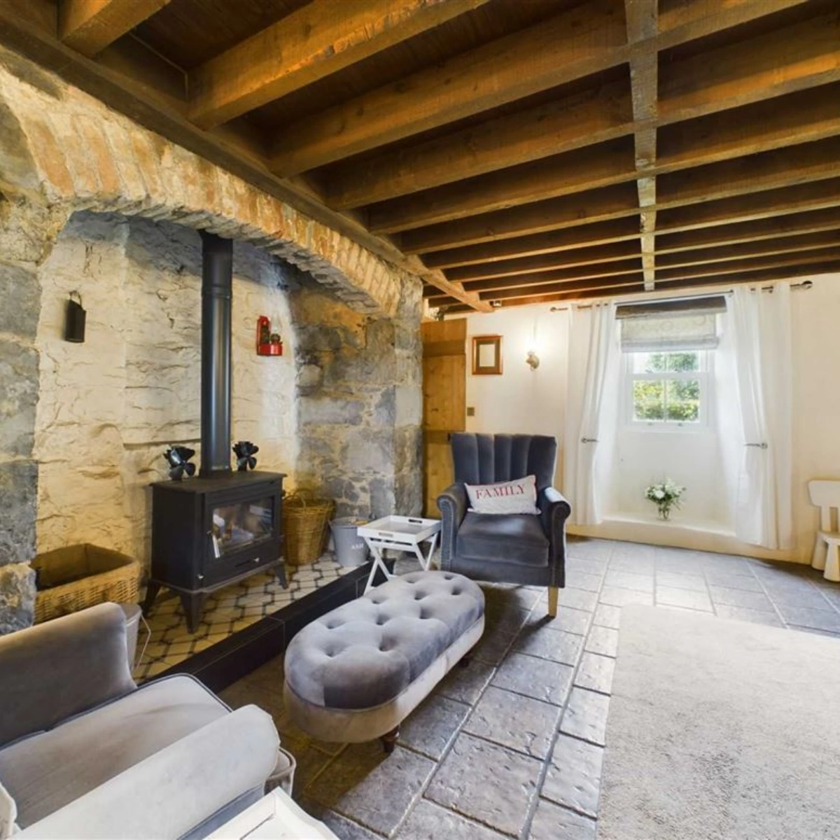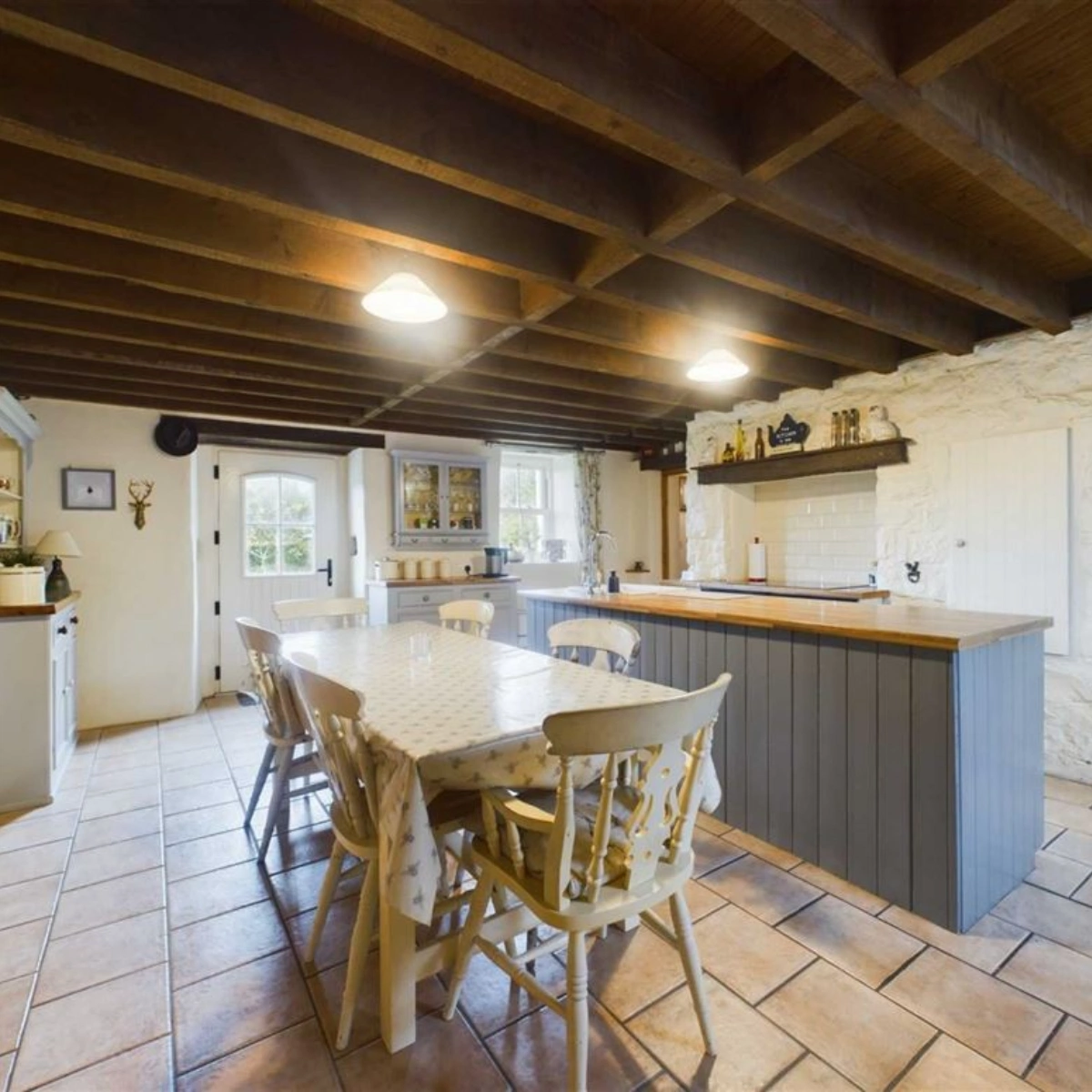 Inside, the kitchen serves as the heart of the home, blending rustic aesthetics with contemporary functionality. A pantry and utility room have been added for practicality while the open-plan sitting and dining room cultivate a warm, community feel.