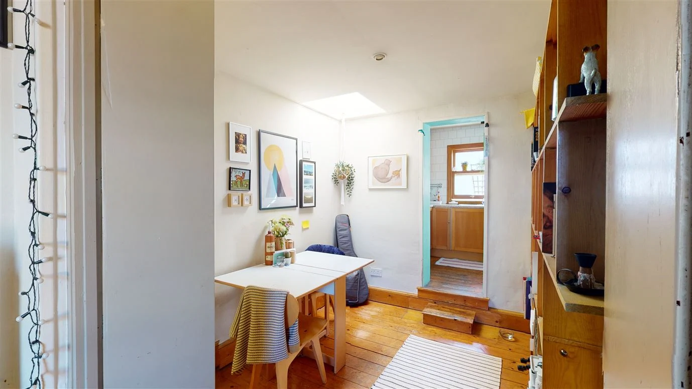 This home is a great example that period interiors don’t just belong in grand houses. The 42-square-metre-house really packs a punch with its split-level main room, the decor and large cast-iron fireplace not typical of what you see in a small terraced cottage like this and yet it works.