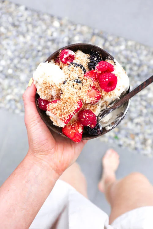 - Tip the coconut sugar and vanilla extract into the bowl with the coconut cream and blend using a hand whisk (or food processor) until smooth.