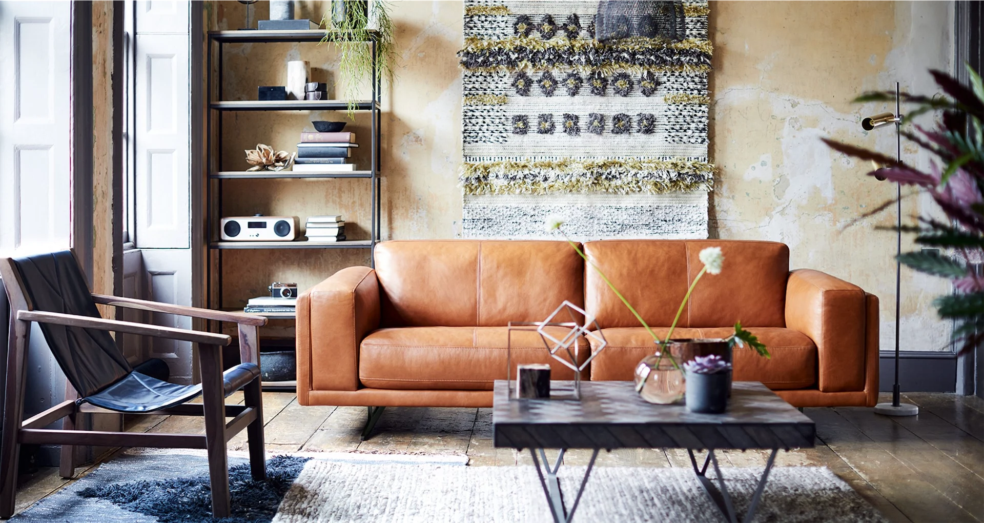 If you have young children or a family pet that loves perching on the sofa, leather can be a good choice – offering increased durability as well as a stylish aesthetic. The Hackney sofa from the French Connection range at DFS is available in a rich tan hue, and adds a touch of urban groove to a modern space.