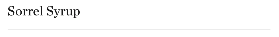 METHOD • 1. In a small saucepan, heat the water and sugar over a medium high heat until boiling, turn down slightly and simmer for 5 minutes. Set aside to cool. 2. Wash the sorrel and blitz in a small food processor with 2 ice cubes. 3. Pour the blitzed sorrel mixture through a sieve into a container, then add the cooled syrup. 4 This will keep in the fridge for a few days. Use to drizzle over cakes and ice cream, or in your G&T.