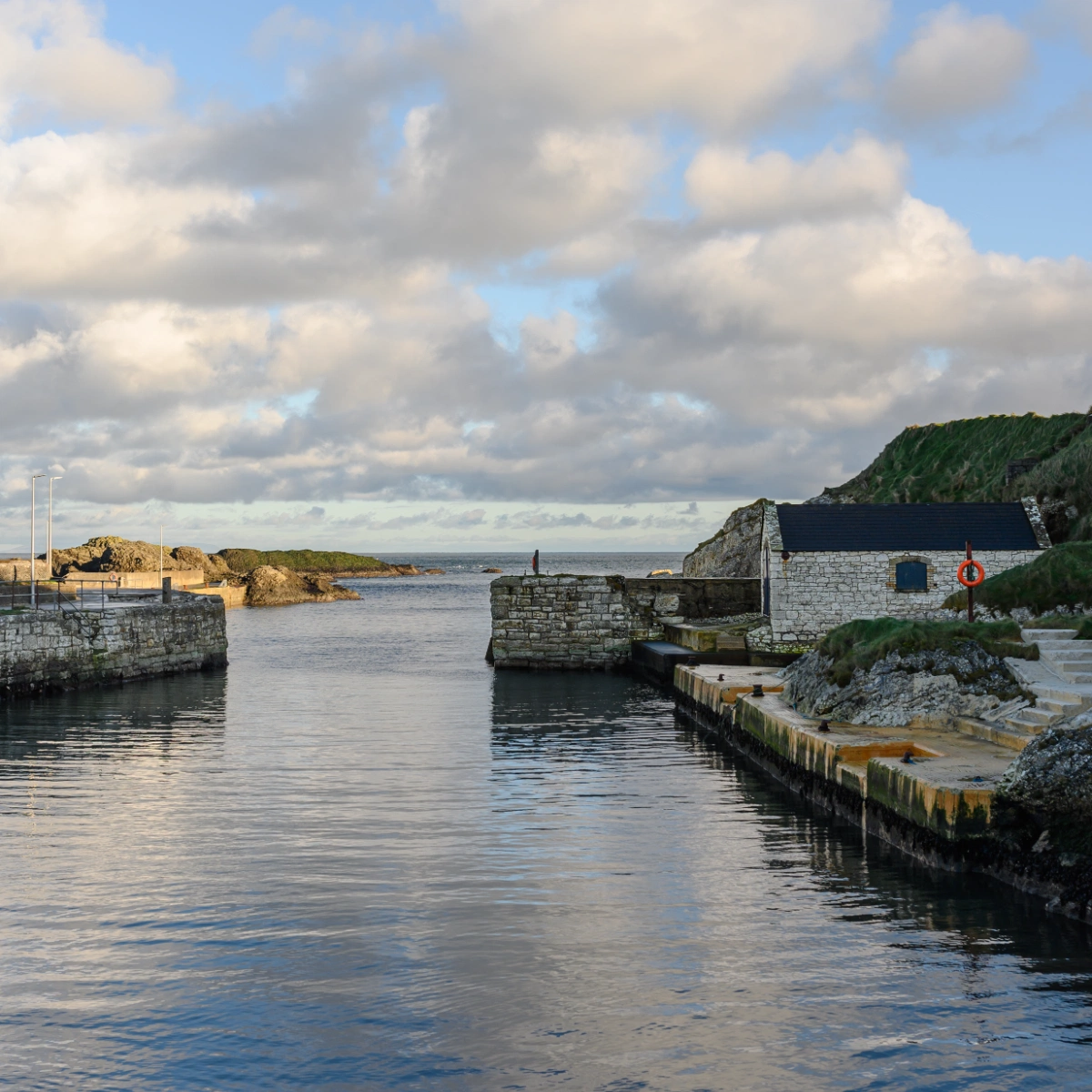 Driving into Ballycastle, the sun is throwing shafts of light over velvet green fields huddled around of one of the nine glens of Antrim. Colourful rows of houses run down to the sea, the beacon-like limestone and basalt cliffs of Rathlin Island almost a swim away and the Mull of Kintyre in Scotland clearly visible to the left of Fair Head at the mouth of the bay.