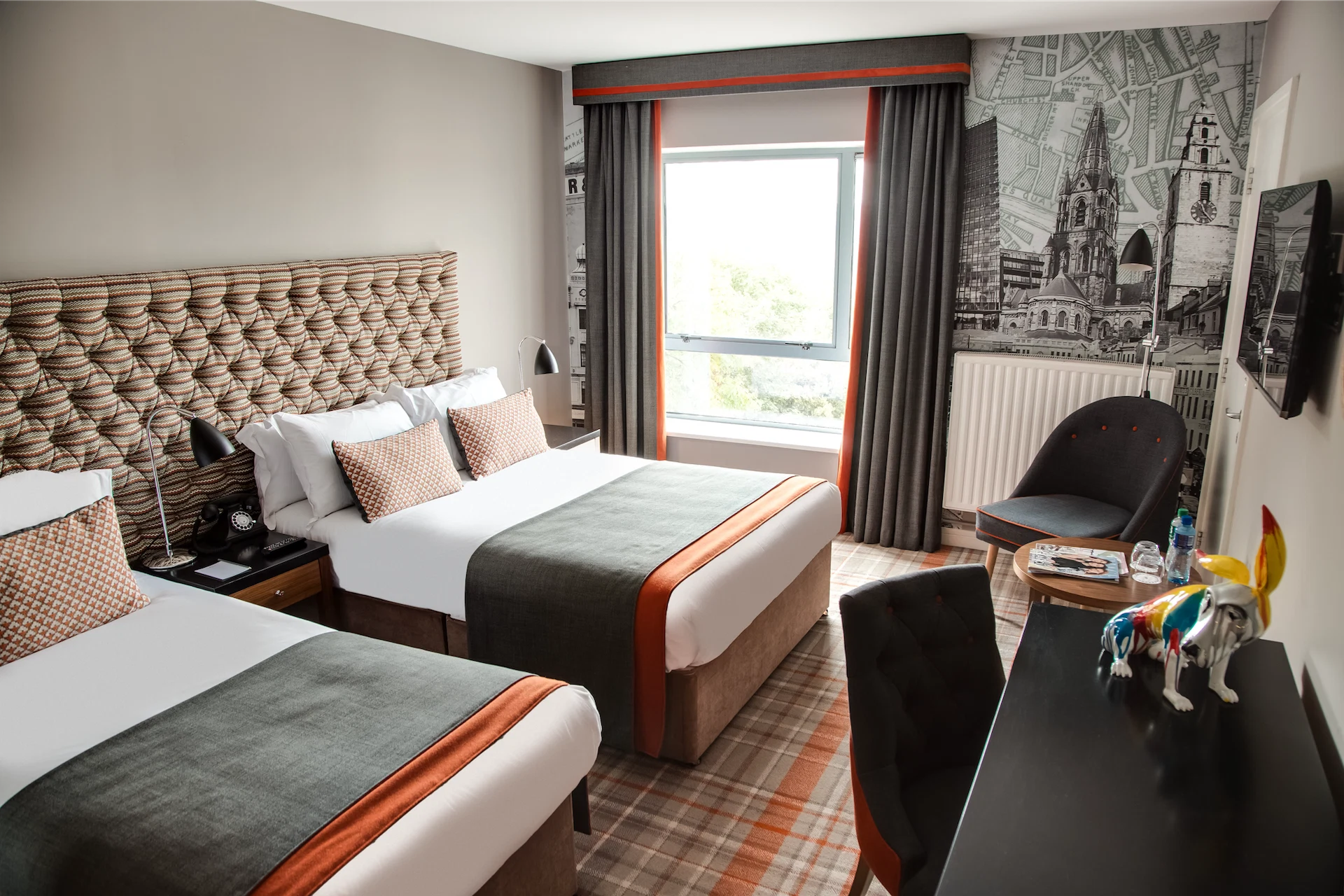 The best views, though, lie just beyond the lobby from the Panorama Bistro and Terrace. The restaurant is at the edge of the cliffside, allowing guests an unhindered, panoramic vista of the city, from the sunken Victorian gardens on the hotel’s property below to the waters of the River Lee and the silhouettes of city buildings along its bank.