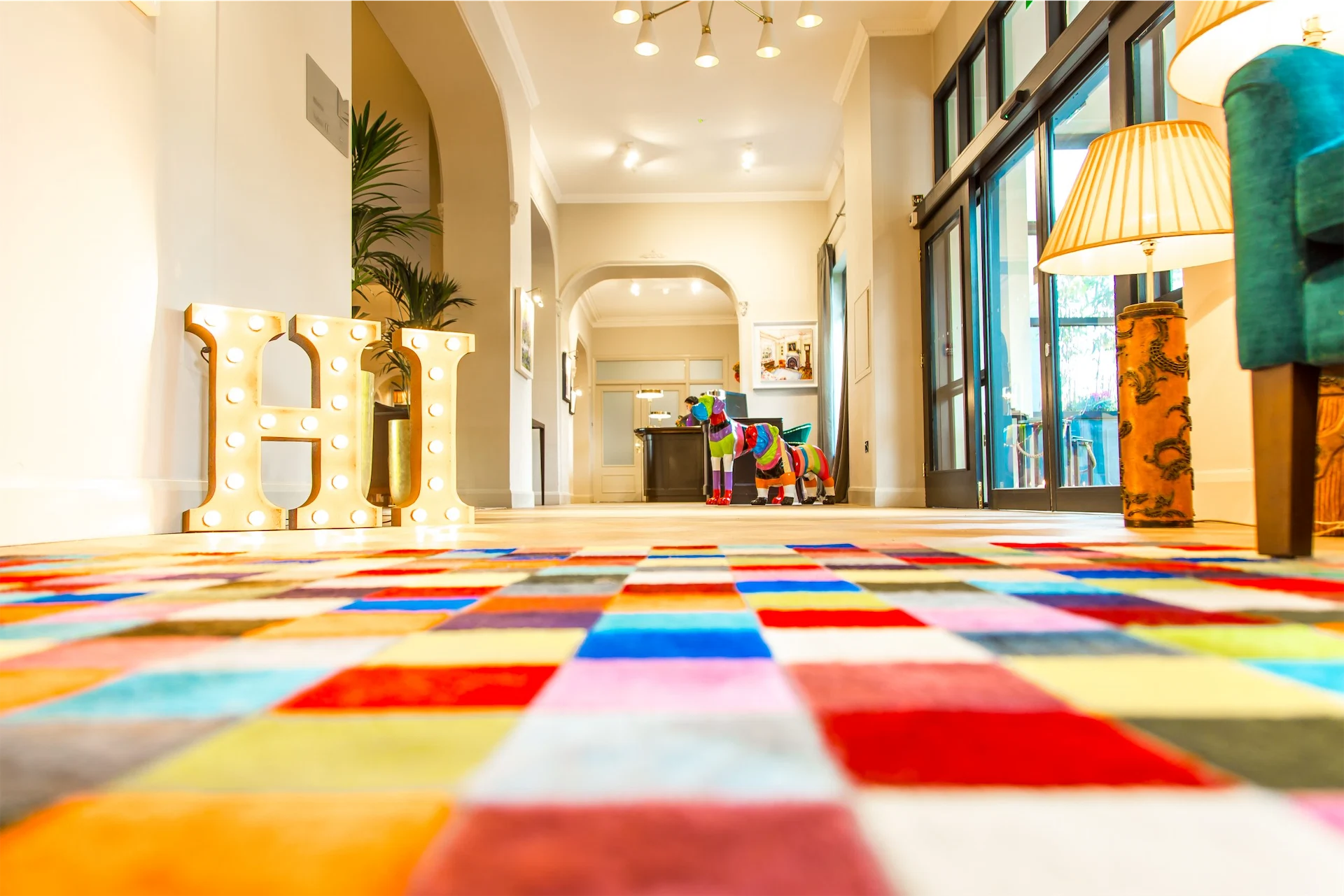 Into the front doors and we were greeted by the lobby, filled with velvet furnishings, unique and colourful art and a lovely lounge that is lined with bookshelves and plushy sofas.
