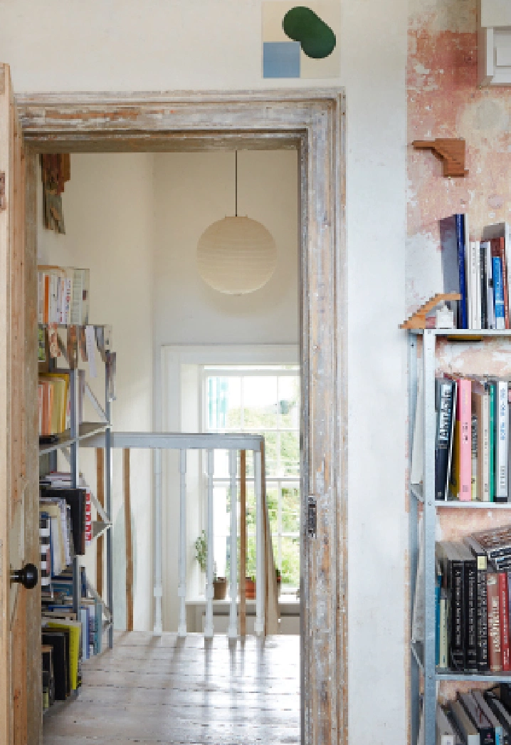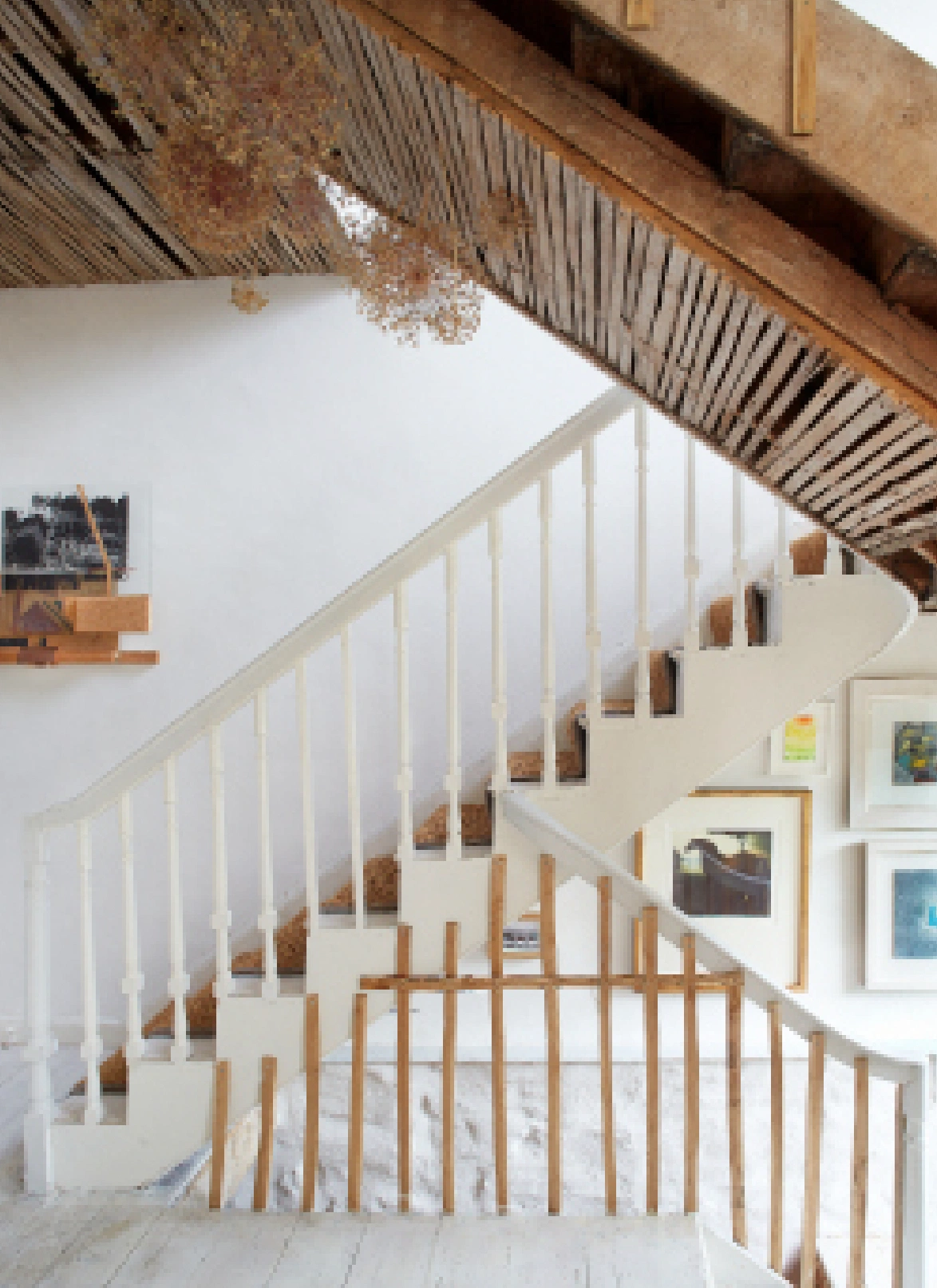 Around the staircase, areas of old, weakened plaster either fell or had to be removed and rather than plaster back over it, the couple decided to leave it exposed, partially because of the tactile, rustic texture and partly because of the tale it told of the history and structure of the house: Douglas uses the stairs to demonstrate to his architectural students how stairs were built in bygone times.