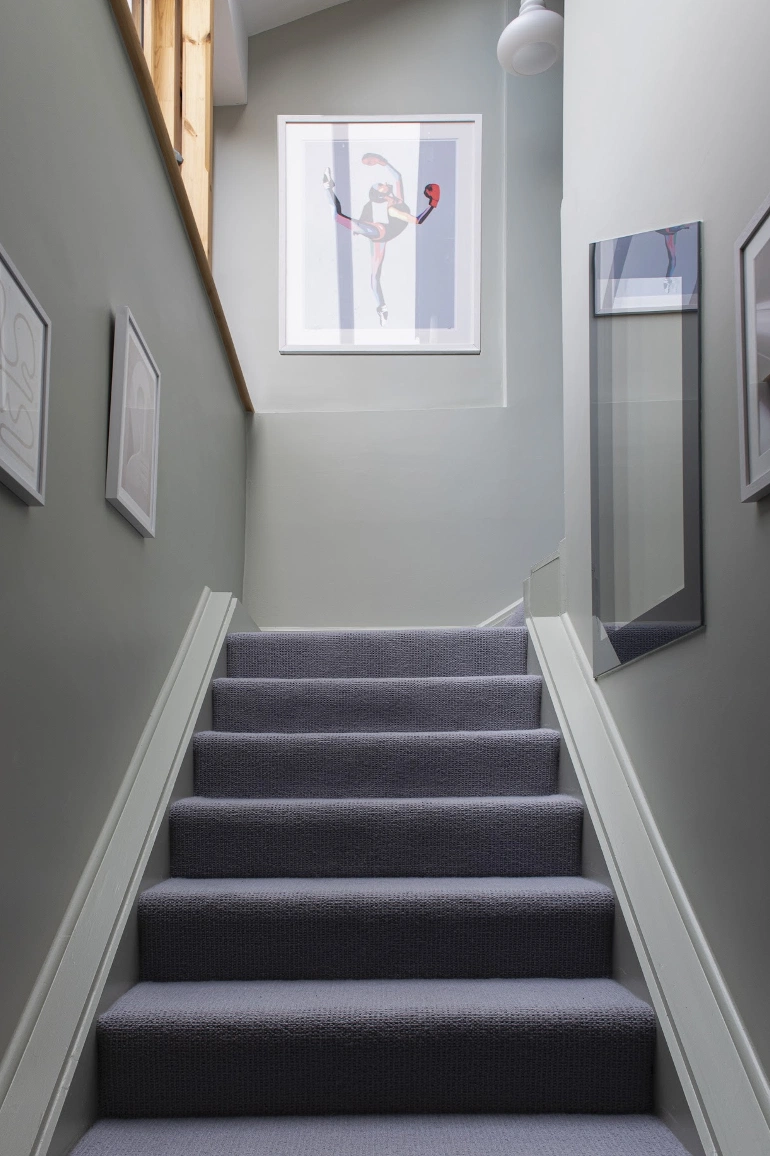 You can “colour drench” an entire stairwell, for example, including the string and the entire balustrade, and then switch back to a neutral at the landing.