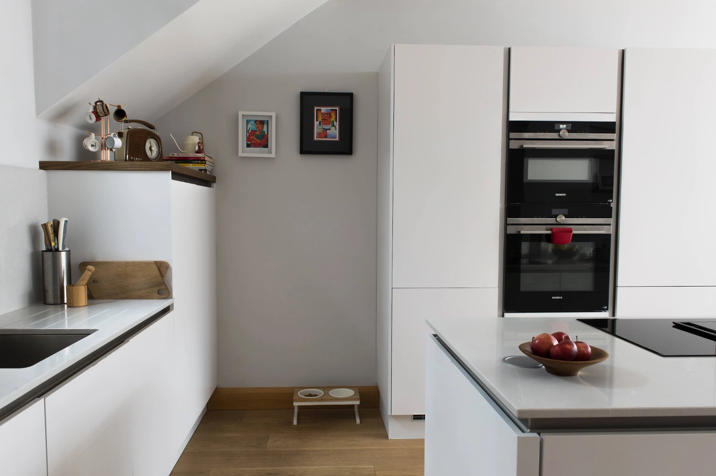 Spraying allows for a much more even finish on cabinetry, and is often less labour intensive than hand painting joinery. In the case of a one-off vanity or a small kitchen, consider asking your painter for a quote.