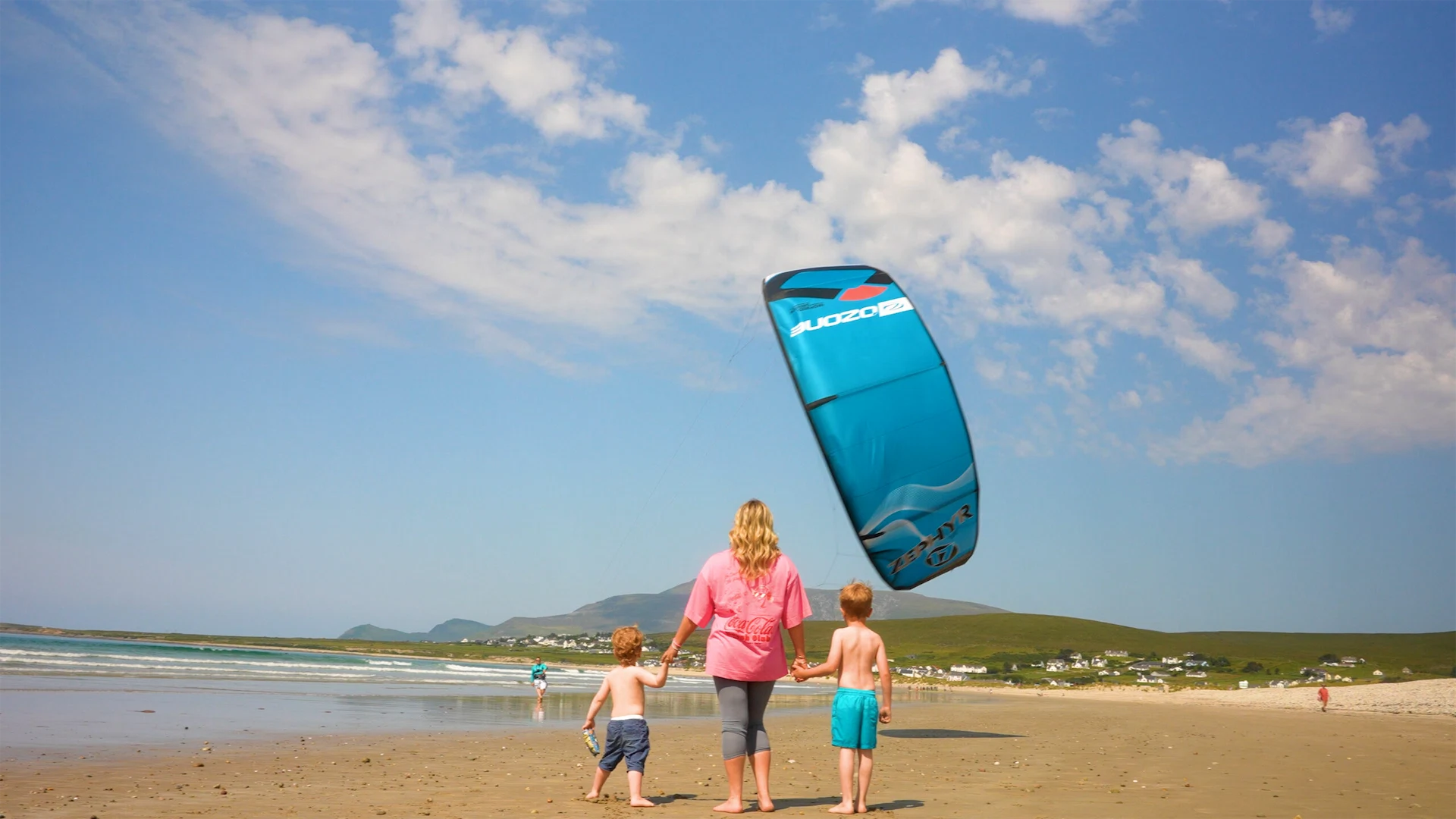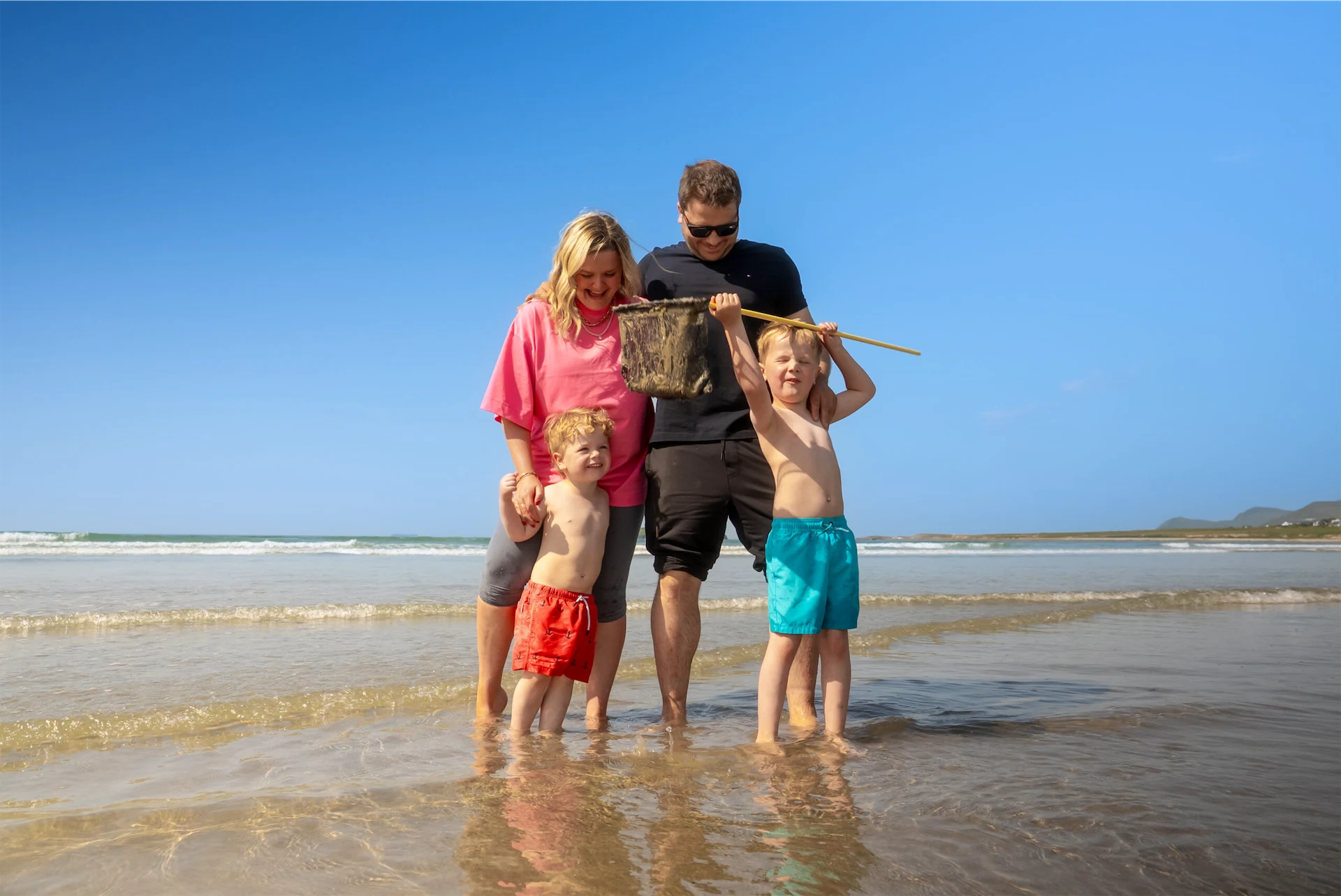 When we arrive in Mayo, shoulders drop. Shoes are flung off. Everyone exhales. The pull of the beach is immediate, and for us, that means Keel Beach. It’s hard to do this place justice. The crystal-clear aquamarine water is shallow enough for the boys to splash safely, and the vast sky above is perfect for their dad to kite surf like a pro. Watching that giant arc of colour twist and swoop, just above the waves is just as fun for the boys as it is for him. It’s always a special moment when the kite comes out.