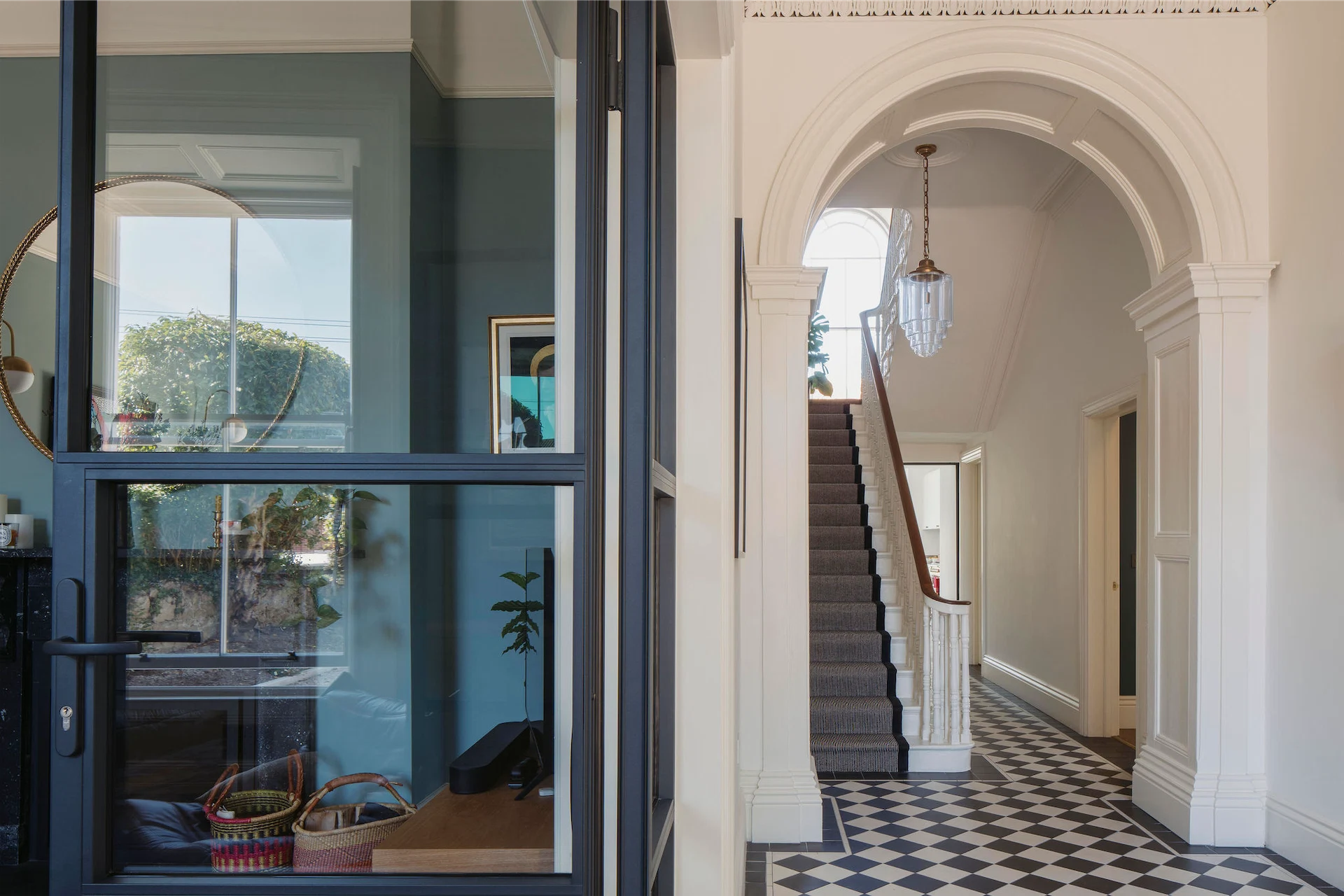 Luckily, he says, the owners believed in the value in restoring the beauty of the original house. “They wanted to celebrate the old by restoring the original house, and maximise the well-proportioned original rooms,” Shane explains. “They then wanted to add utility spaces and a new kitchen, dining and family space that was well connected to the garden and the original house. They were very keen to ensure that any alterations and additions were bold but also complementary to the original.”