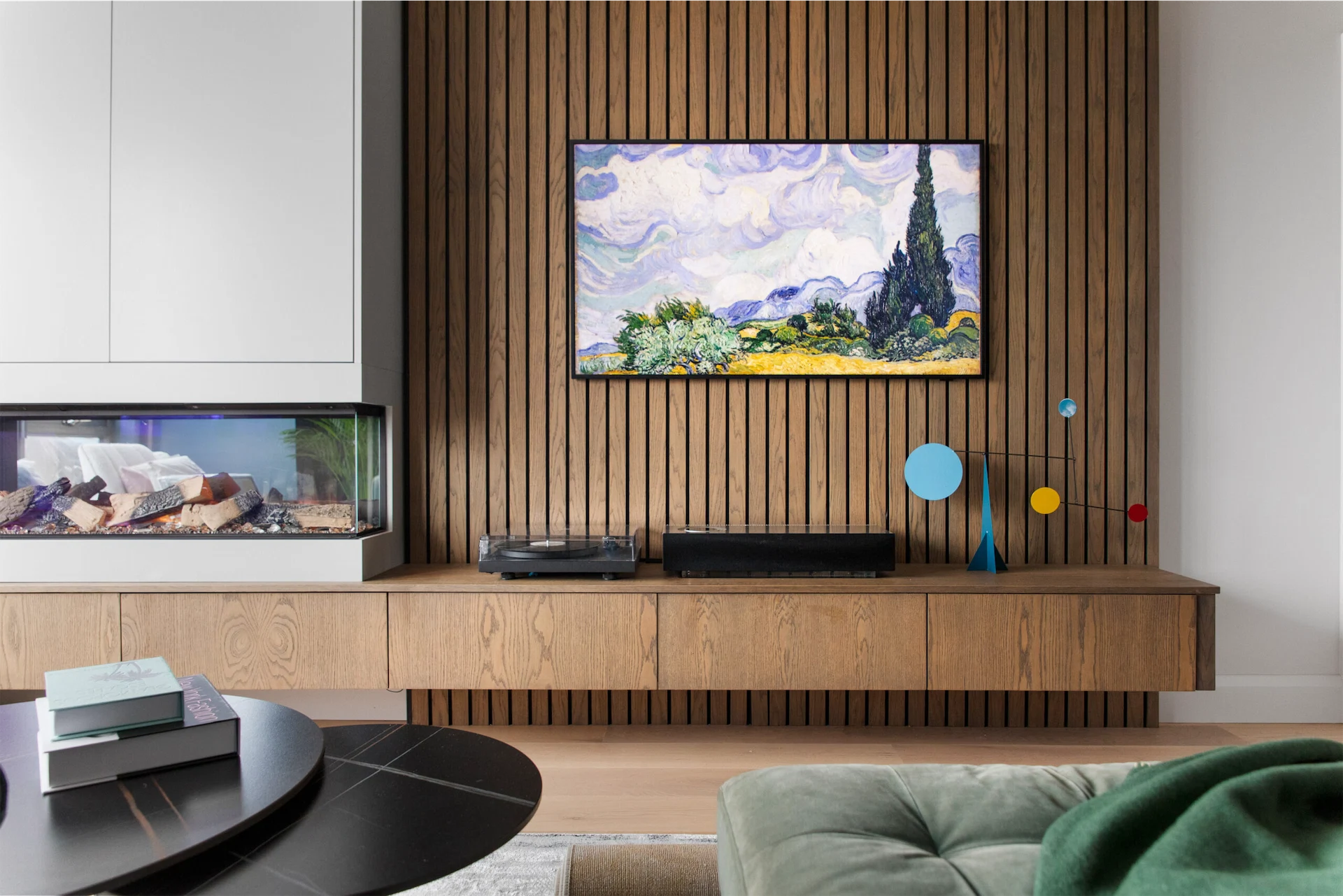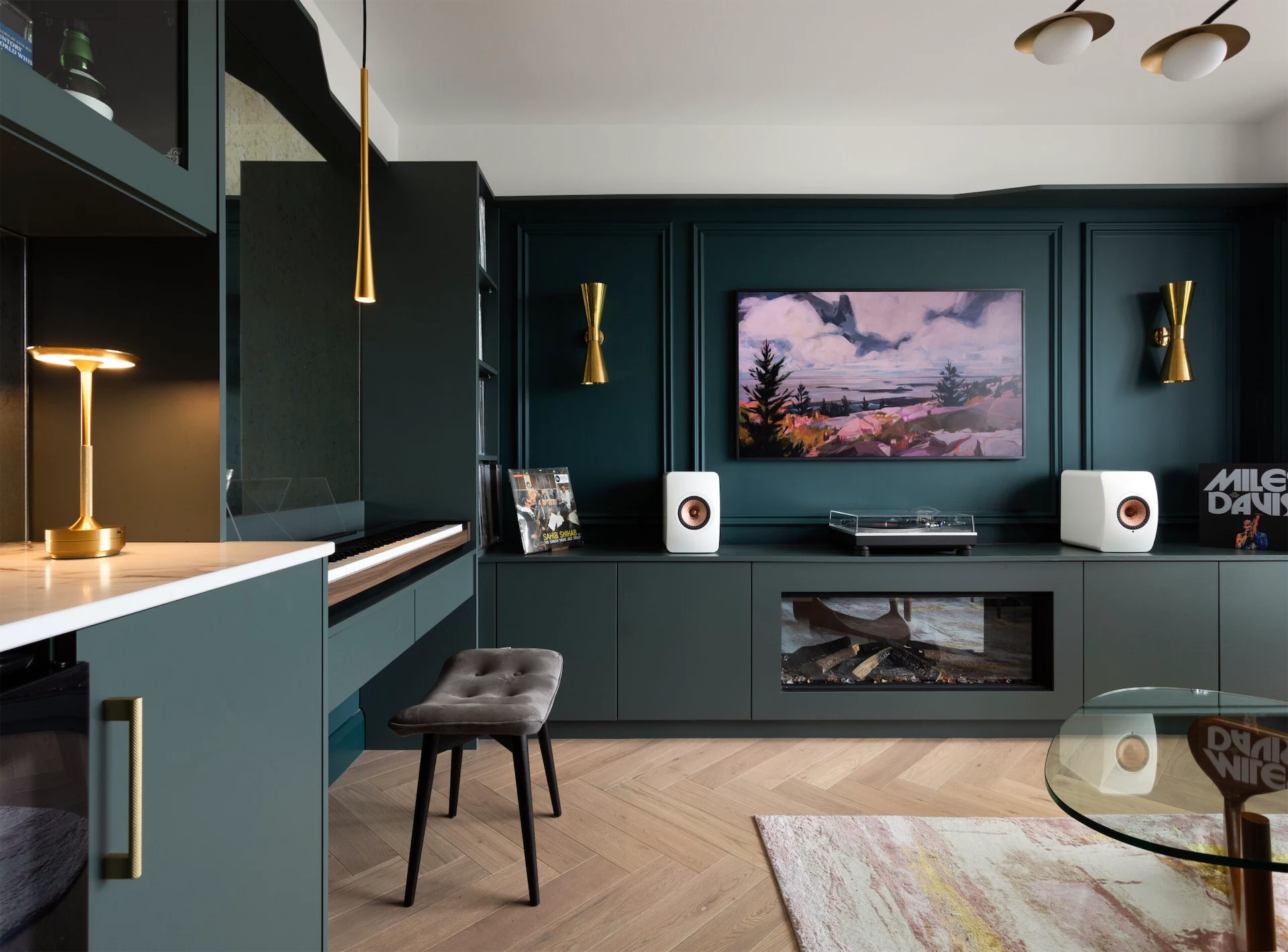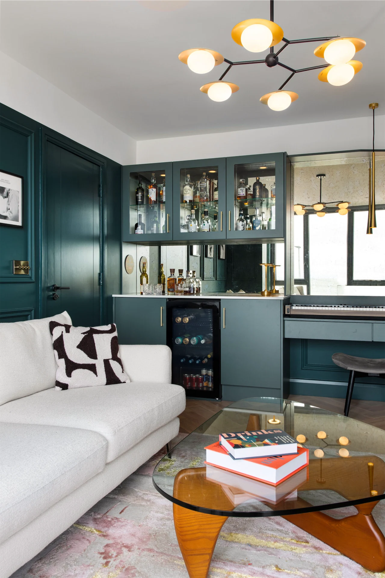 “It’s our clients’ favourite space and you can totally see why,” Joanne says. “With stunning views over the sea, our clients wanted to create a space where they could enjoy their passions: music and entertaining. They wanted this space to feel like an upmarket bar, creating a real hospitality vibe.”