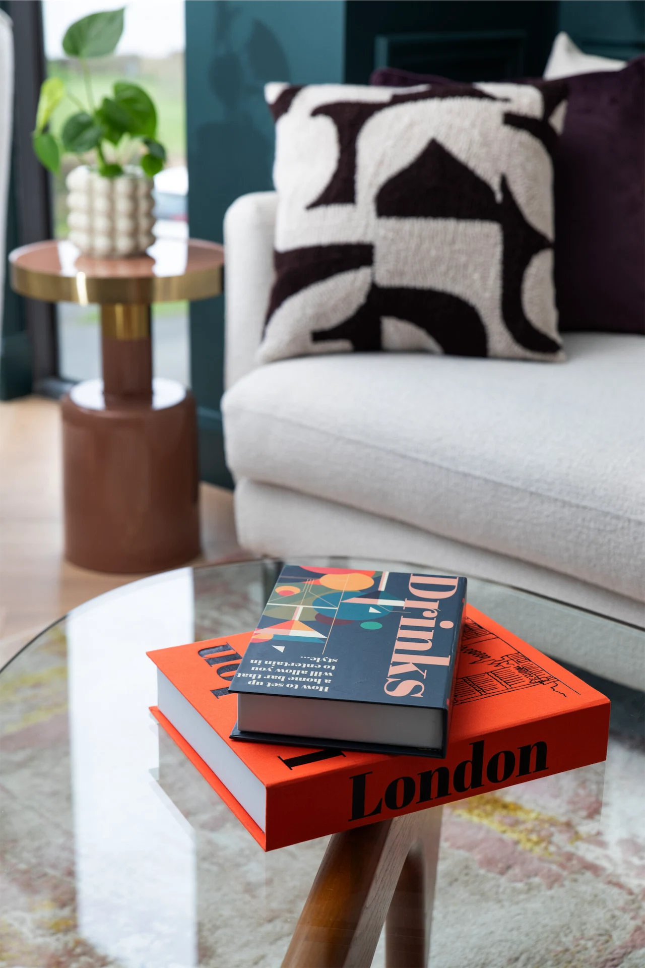 The sofa and armchair were sourced from DFS, while the rug is from Rugs.ie. Lighting is from Hicken Lighting, while the pink side table is from April and the Bear and the piano stool is from Woo.Design.
