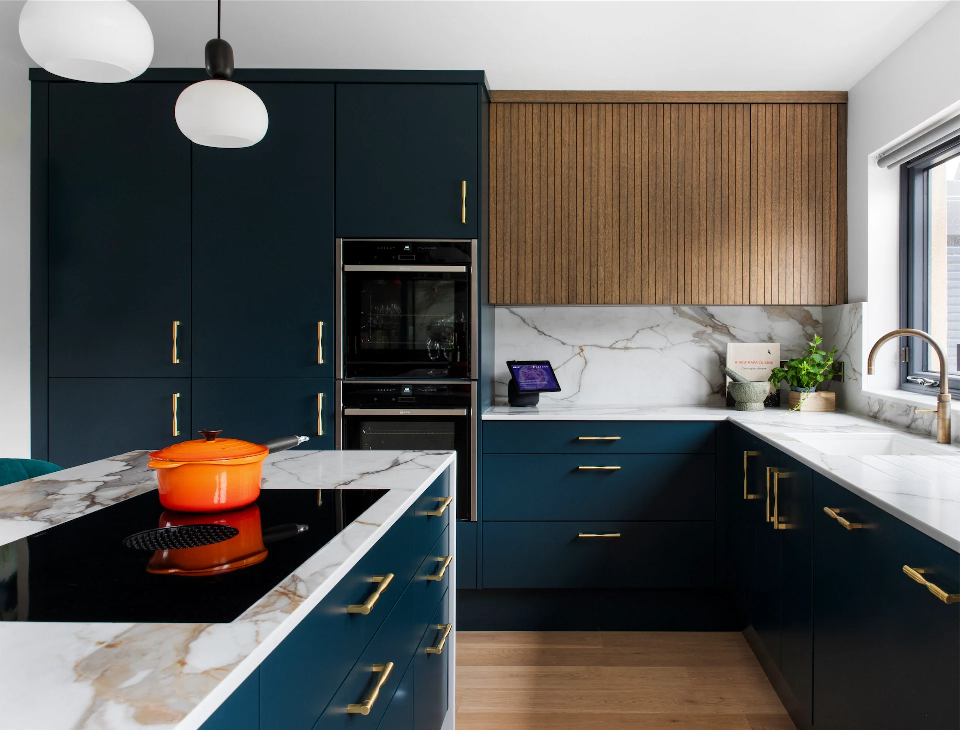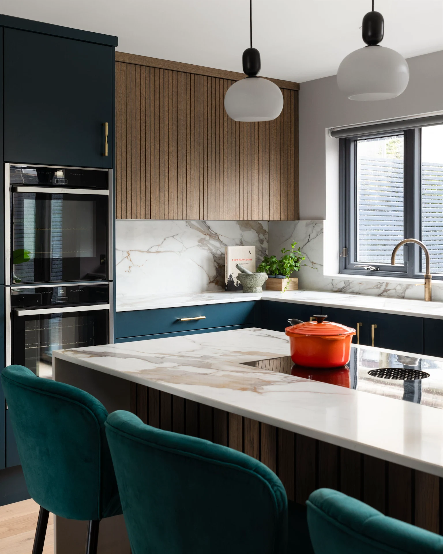 Worktops from Egan Stone and wooden flooring from Irwin flooring add an organic touch, while the furniture was sourced from Cult Furniture and Kave Home.