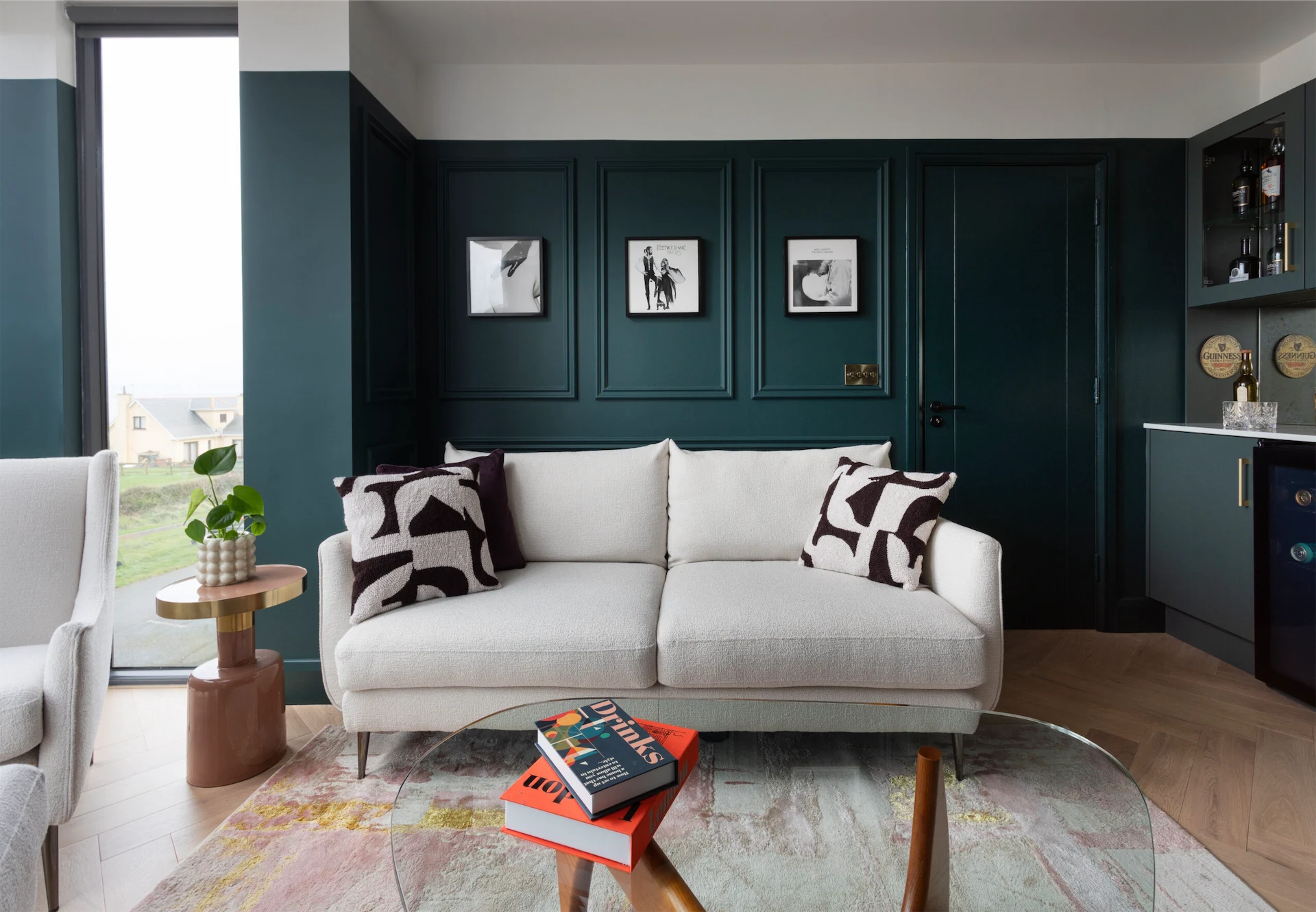 A seafront Skerries home has been given a luxe update with rich colours and hotel-inspired details