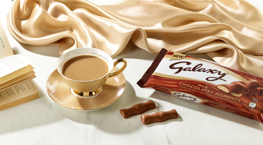 Galaxy Milk Chocolatey Moments Biscuits were created just for this occasion. Their shortcake biscuit base absorbs tea or coffee while their milk chocolatey covering melts just enough with each dip and bite. Plus, they come in a convenient curved shape – perfect for easy dunking.