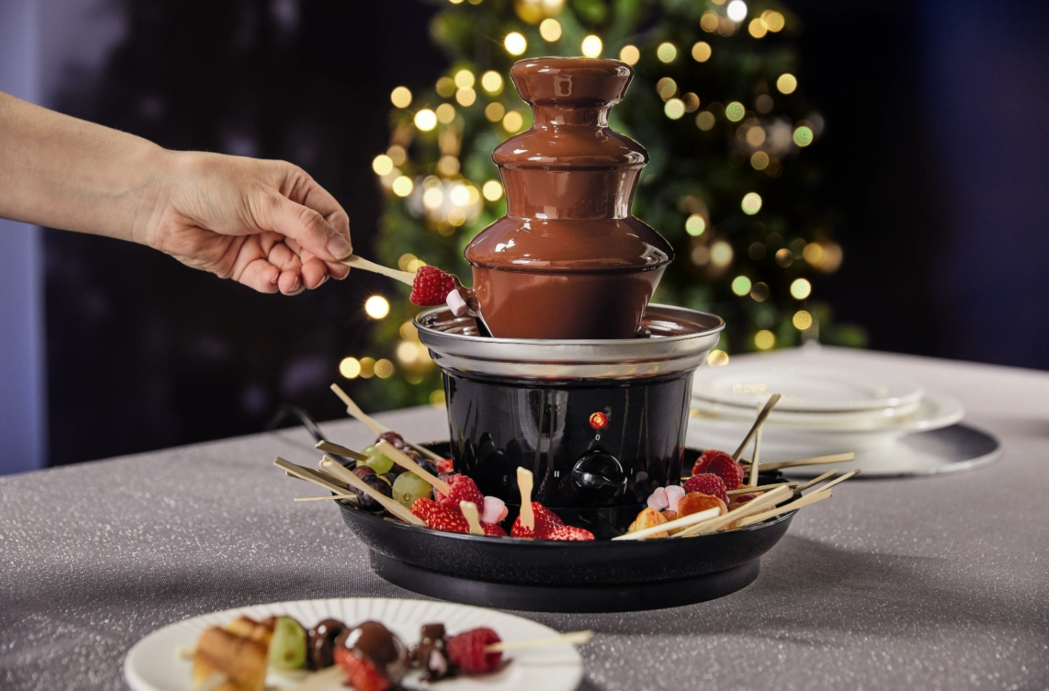 If dessert is more your thing, you can create a sweet cascade of chocolate to dip fruit, biscuits or marshmallows with this.