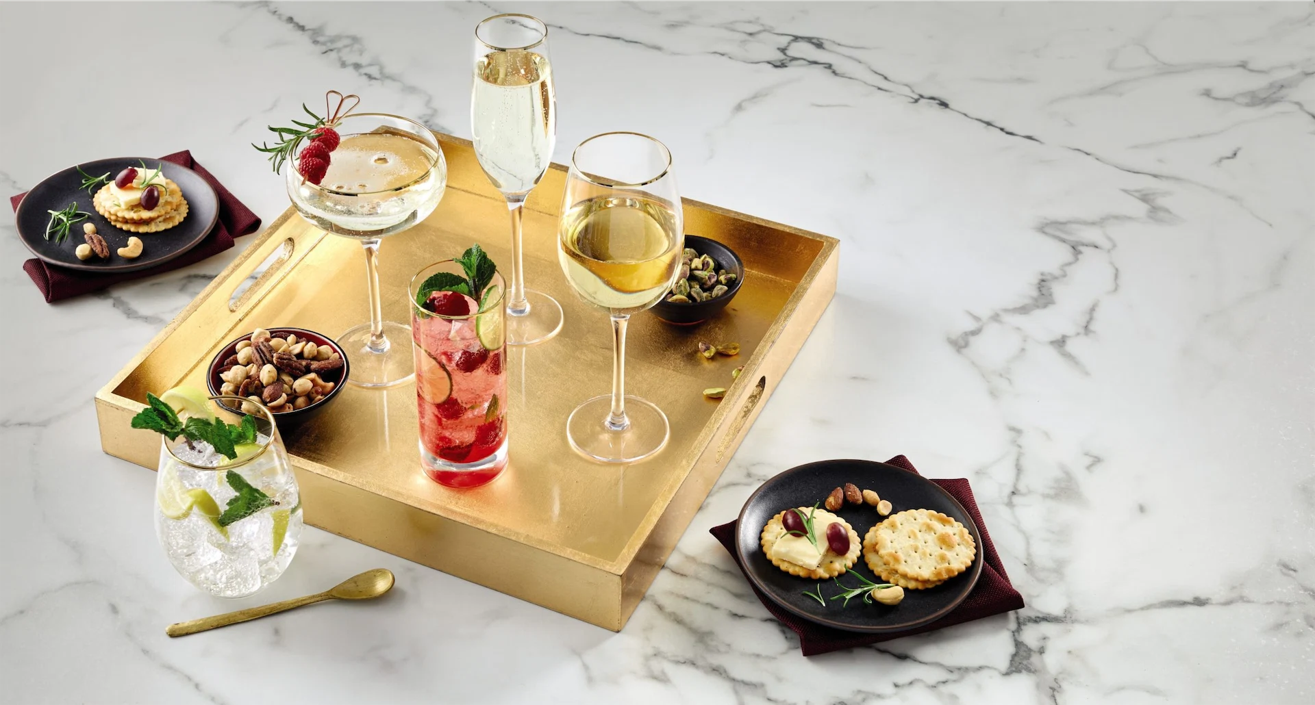Christmas tipple, anyone? Serve up drinks or snacks in style on this very nifty tray, available in red, gold or silver.