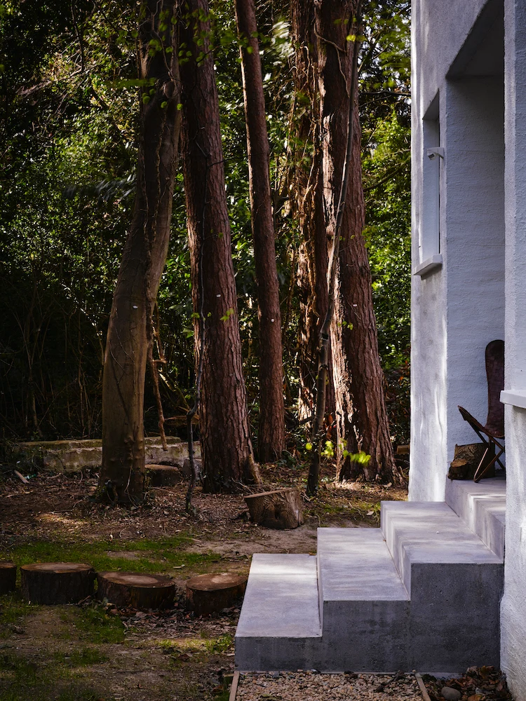 I press for examples and he points to the two windows in the corner of the kitchen. “There was a temptation here to drop down these windows so you could sit down and see out. But that corner is actually closest to the boundary fence and if it was any lower you could see it, and the game would be up.” Inspired by Luis Barragán’s trick of putting obstacles in the way, Mark held firm and now the windows frame a view of uninterrupted forest.