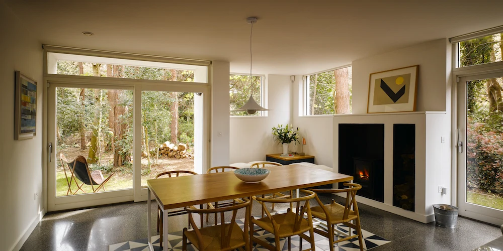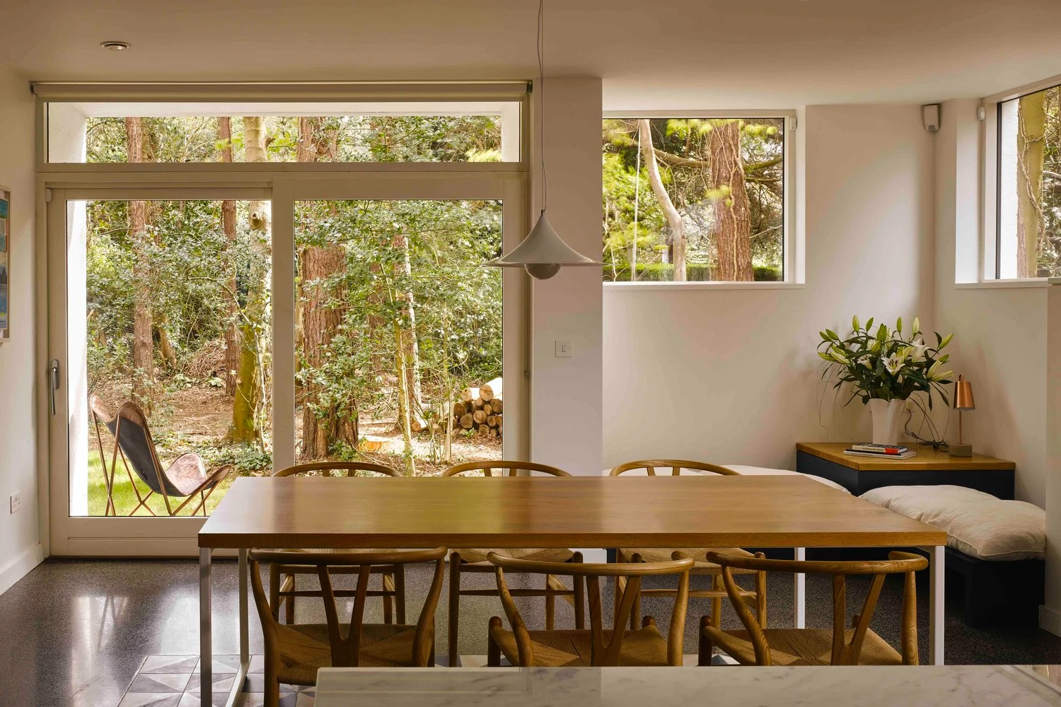 Mark Arigho of Arigho Larmour Wheeler Architects saw the potential for a family home amongst the Scot's pines of this triangular back garden.