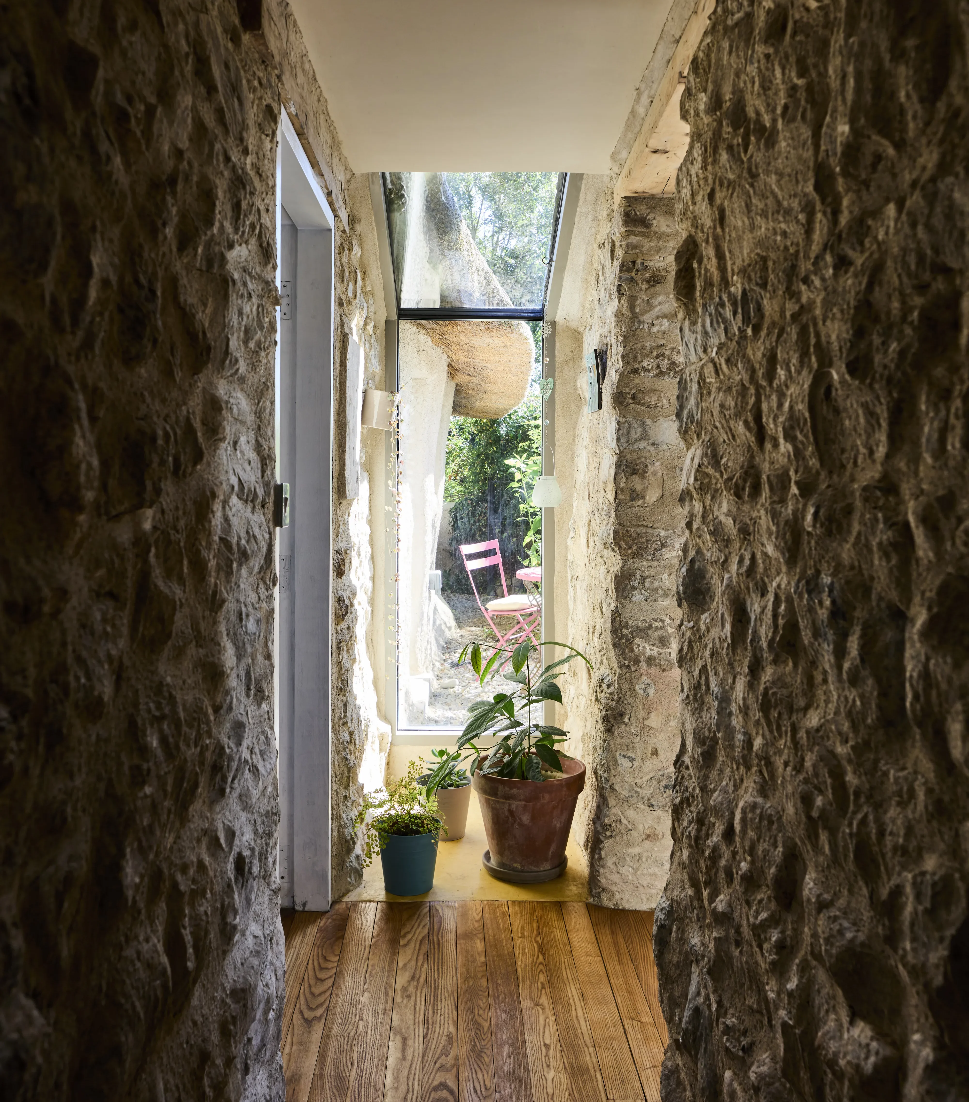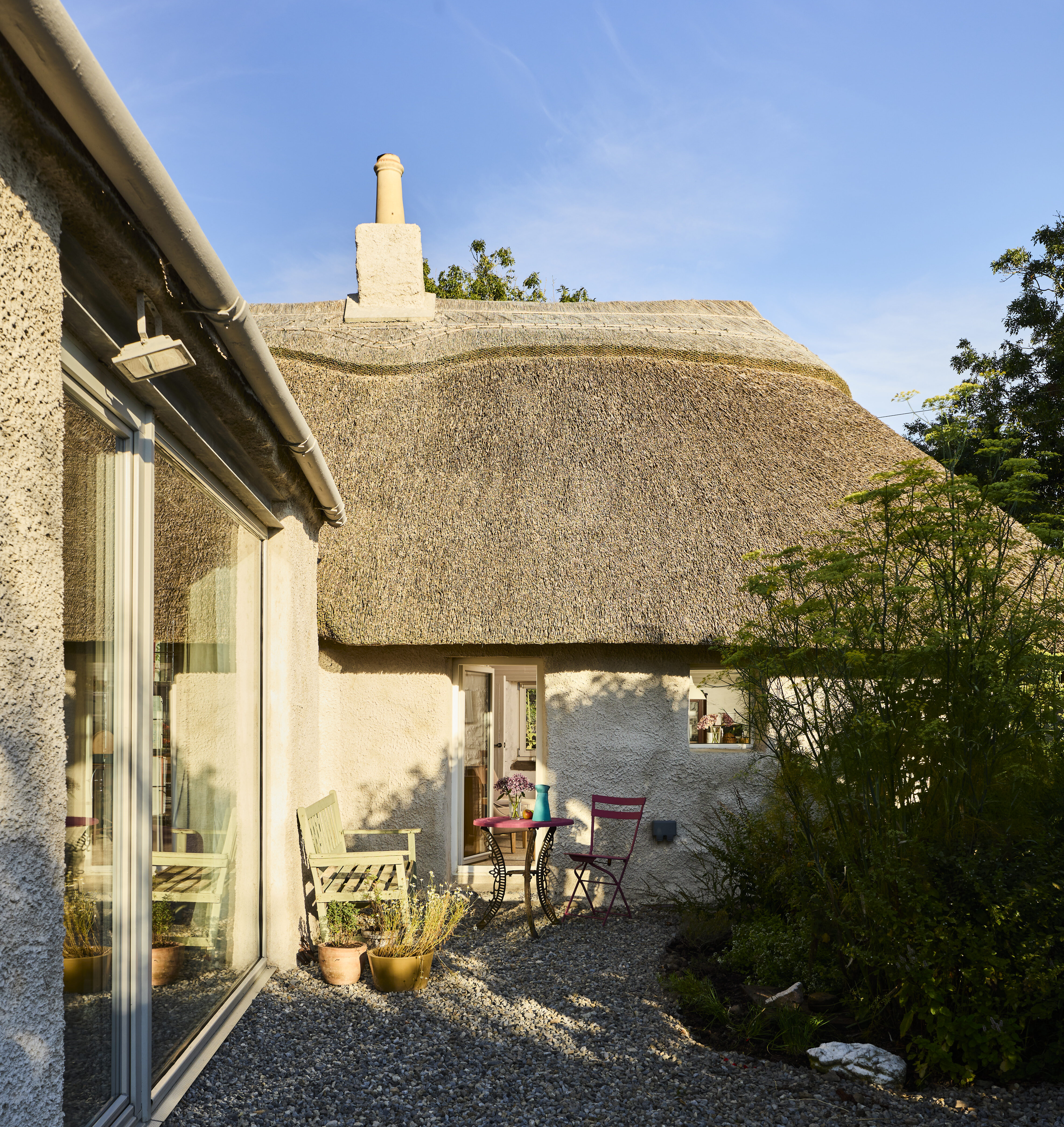 Even the new extension respects the form of the original thatched cottage, not overshadowing it with anything too imposing or excessively modern. “It was really important for me that the gable end of the old house with the chimney sticks out a bit.”