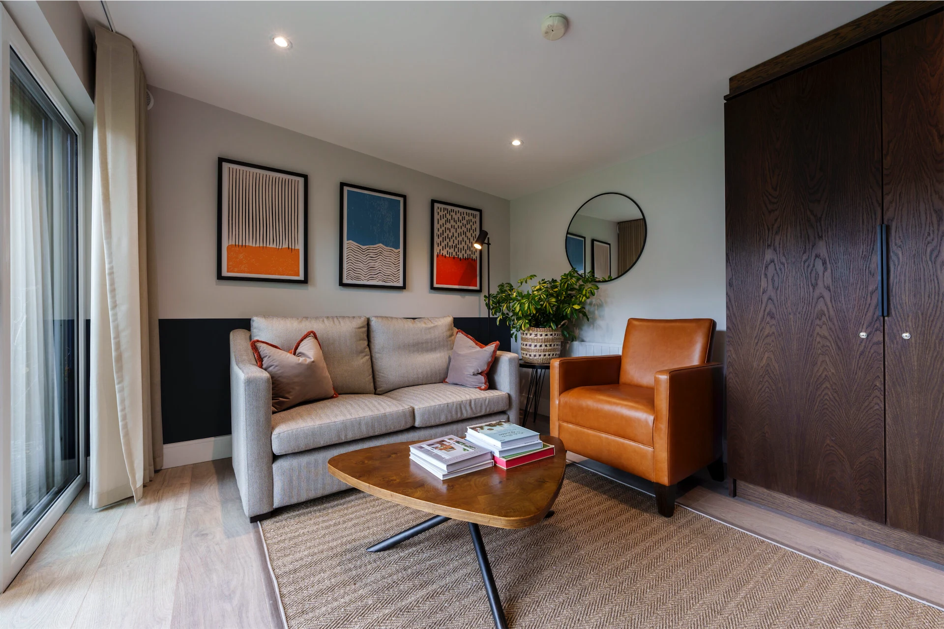 For example, the design goal for this Garden Room renovation in Rathfarnham, Dublin, above, was to provide a multi-use, functional living space, which doubled as a home office by day, and a lounge by evening and weekend. The refined décor features smoked oak wood stains and nods to art deco, against Colourtrend Subtle and Templar Grey as a wall panel.