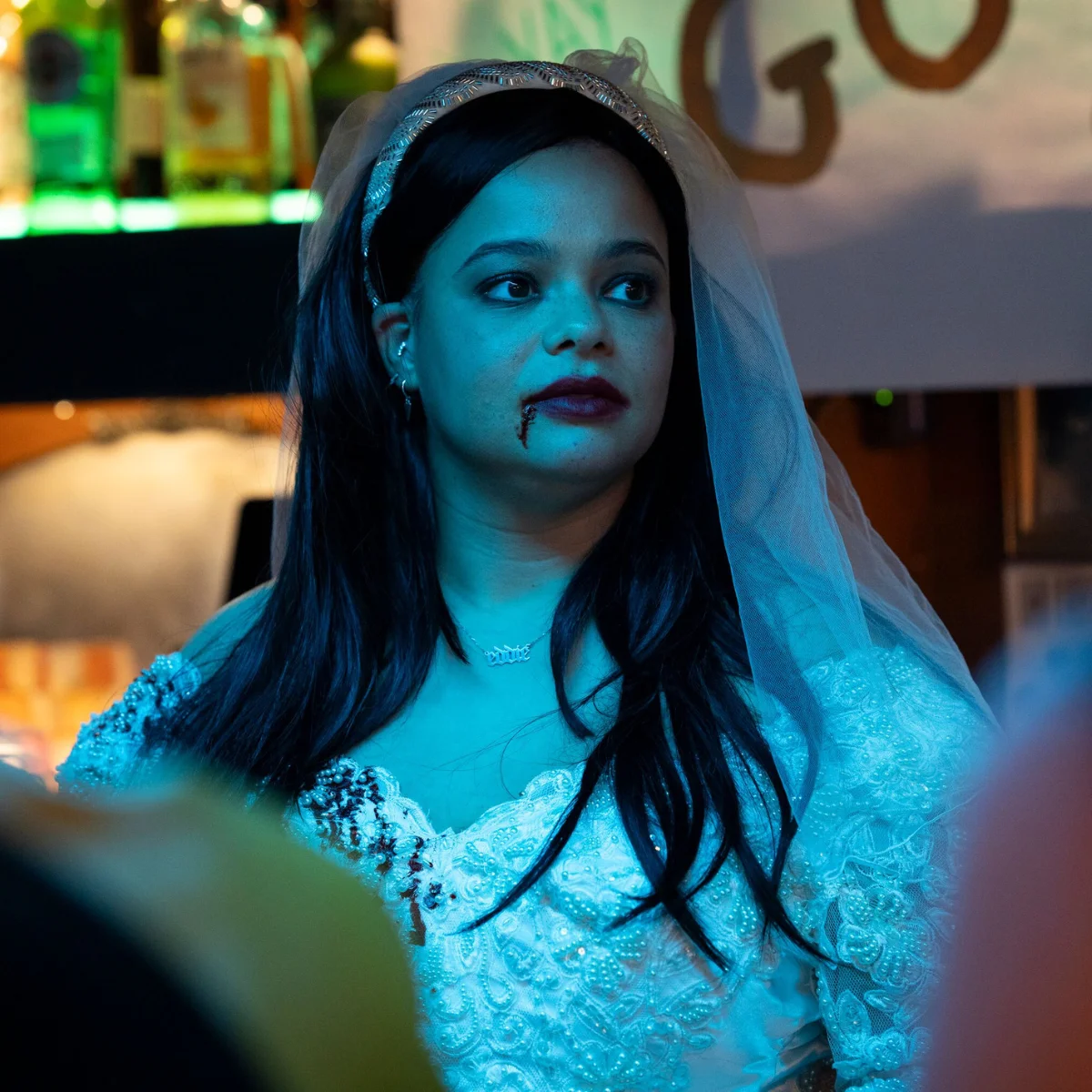 “Eddie is just very vulnerable,” Lydia says of her character’s arc this season. “She goes to LA and is genuinely looking to heal some sort of grief inside her: grief within their friendship, grief for the passing of her dad, grief in family relationships. There’s a lot to process, but instead she finds someone that she thinks can make it better and chooses to believe her, because that’s way more comfortable than the real work that it takes to heal.”