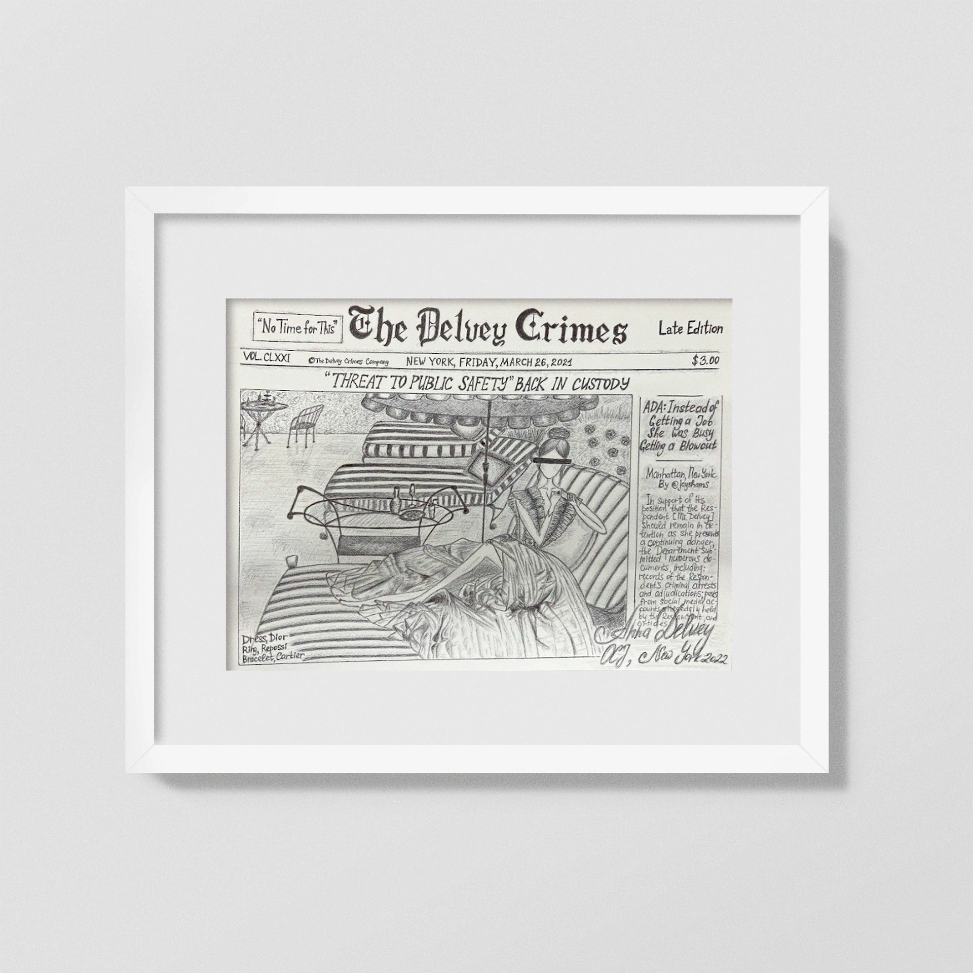 “This is a collection of sketches I’ve created while in ICE Orange County detention,” Delvey explained in a statement to Page Six. “I wanted to capture some of the moments of the past years, both never-seen-before and iconic, using the limited tools I have at my disposal. Some of the pieces are straightforward, others are more abstract and will be unique in meaning and appearance to the observer.”