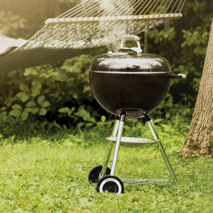 We’ve had a Weber for many, many years, standing outside through the long, cold and wet Irish winter months and it is still going strong. We don’t always follow the Weber rules, often using wood in ours and very seldom closing the lid – to quote my husband, “There’s not much fun in staring at a lid”. Even the times we do cook on charcoal, we will fill the Weber with wood afterwards and use it as a fire pit to keep the conversation going. Original Kettle Charcoal Barbecue 57cm, €249, Weber