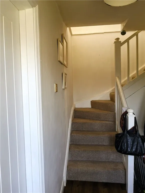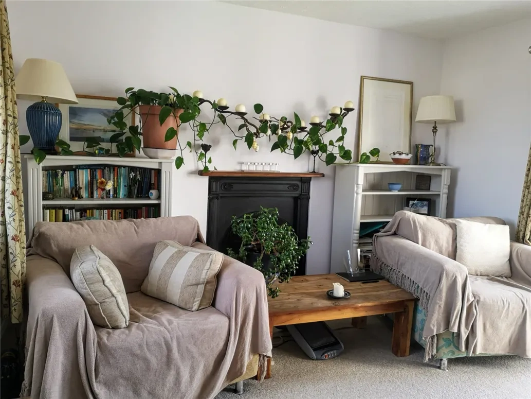 Through the front door of this 123 square-metre home is the hall with a living to the left and right. The main living area on the left also has access to the rear garden via French doors and its own cast iron fireplace. To the right is another cosy nook, this time centred around a stove.