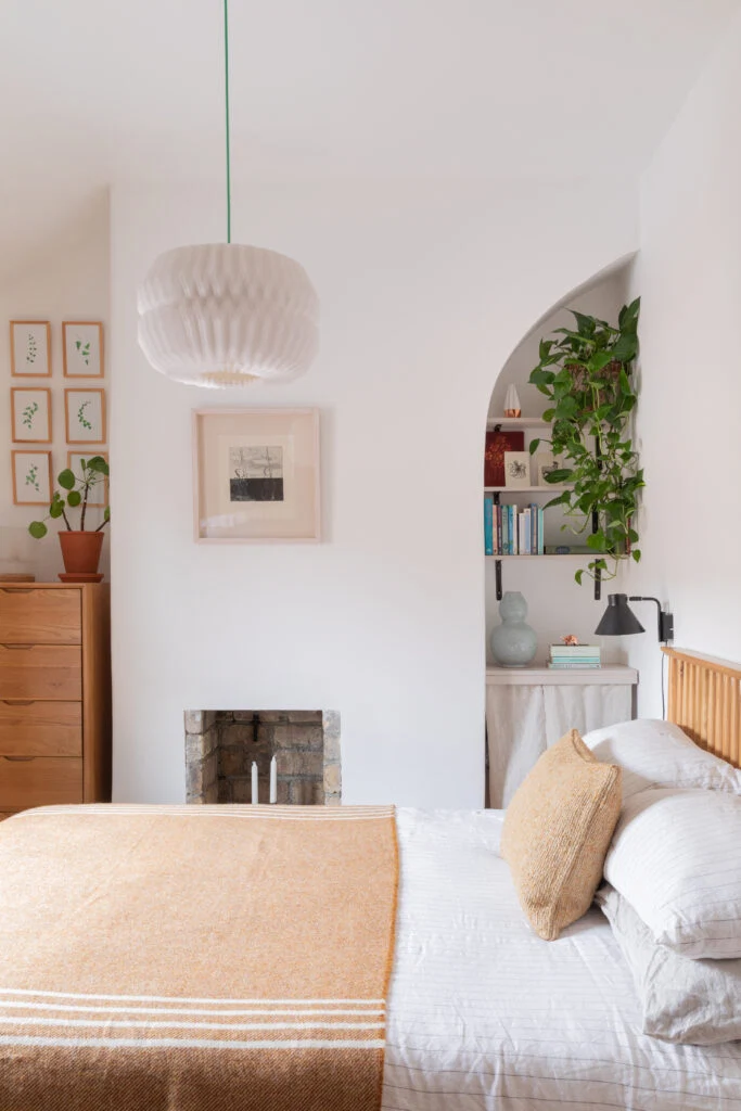 You can paint a bedroom in a light colour to maximise the feeling of brightness, but that doesn’t mean you can’t add a sense of your own personality. In this Wicklow home, the owners added an abundance of plants, as well as interesting finds, art and books, so the space feels truly their own.