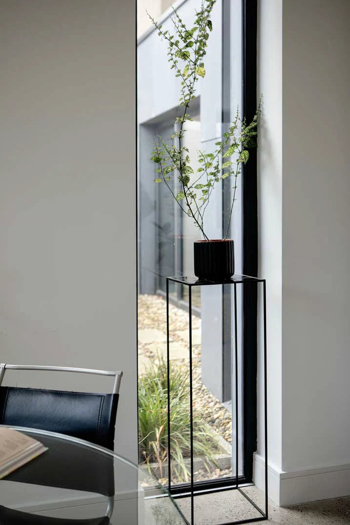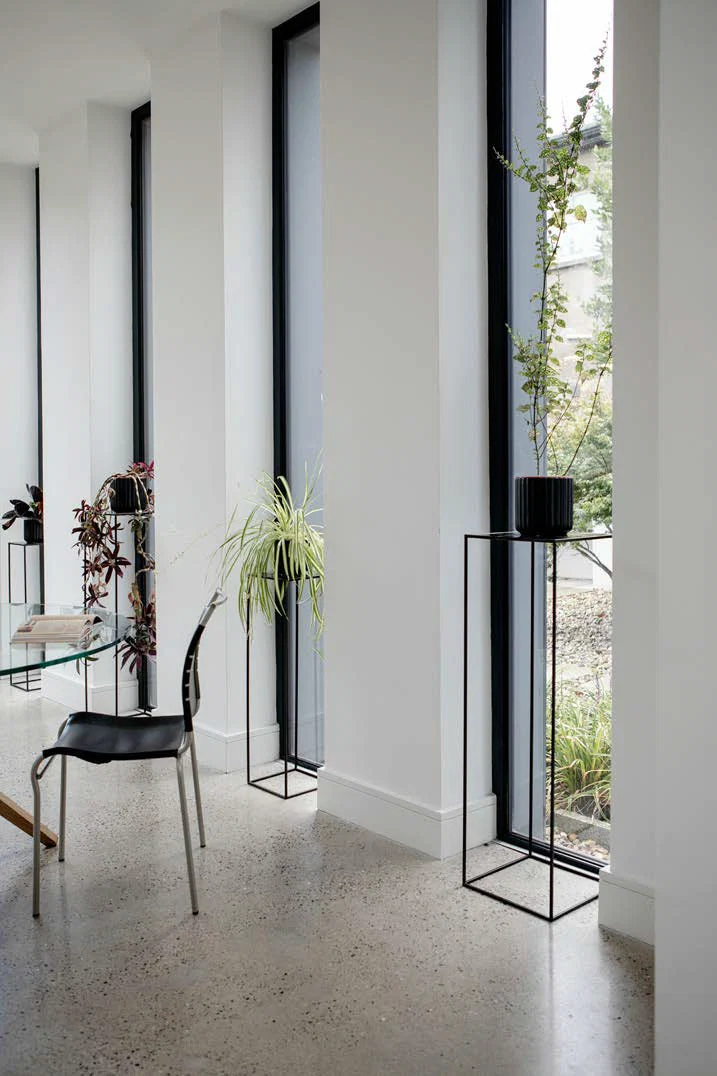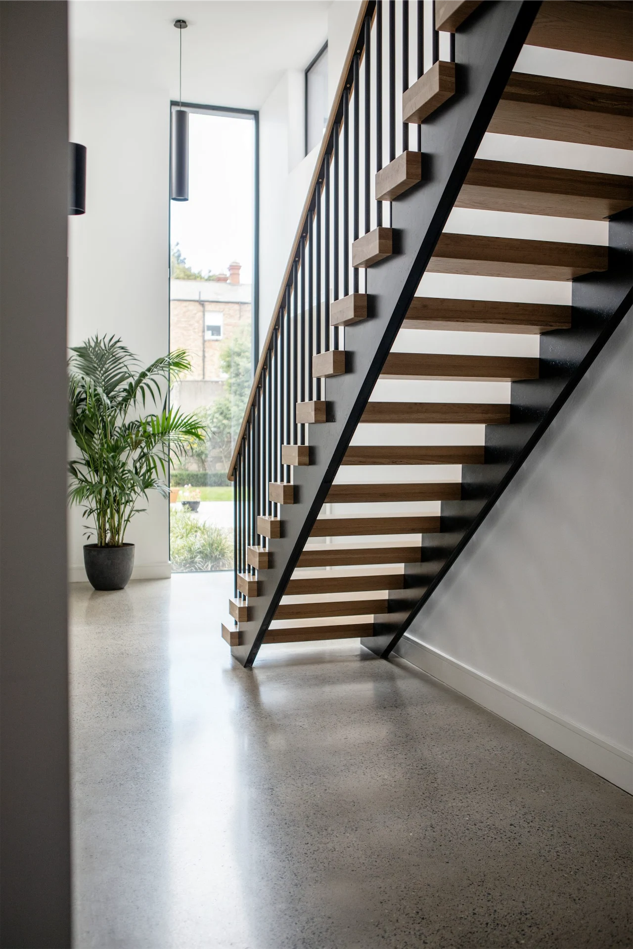 The new staircase does not attempt to mimic the existing one, instead its pared back design introduces this contemporary space of the house, with its poured concrete floor and clean lines.