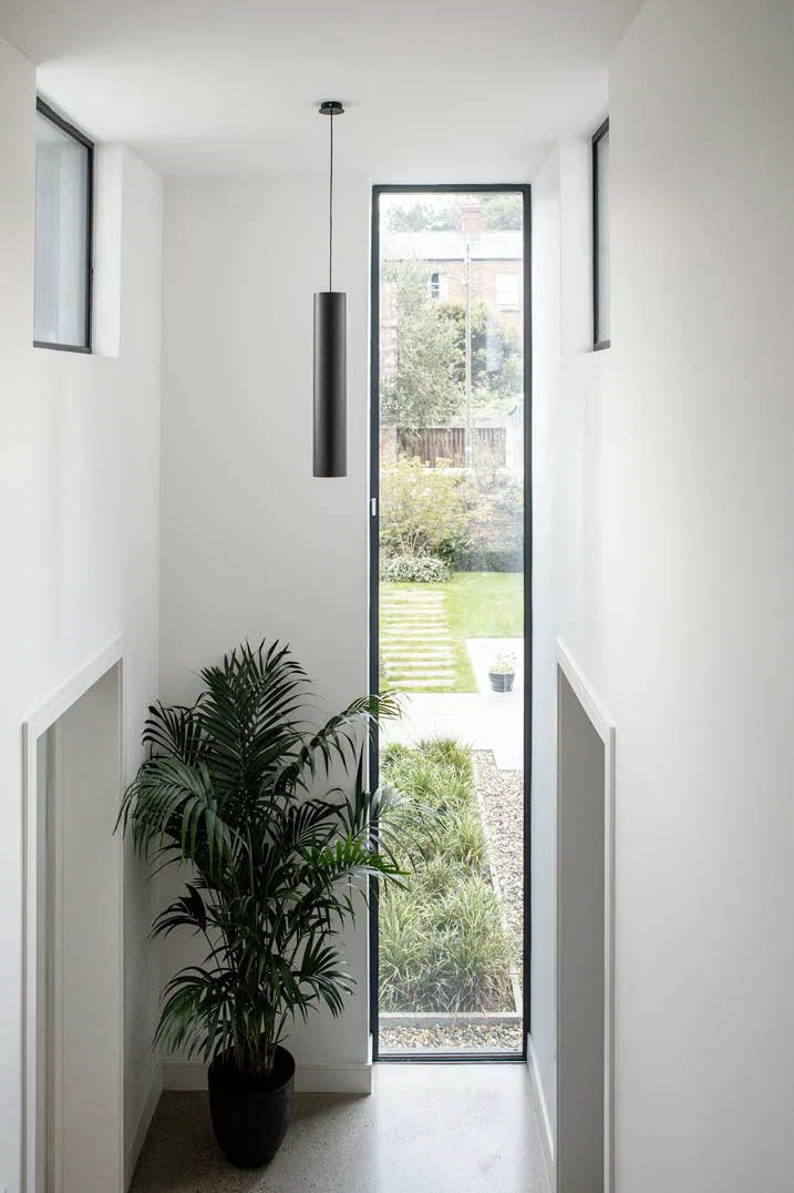 Whereas it had previously pointed back towards the centre of the house, leading into a dark space, it now faces the back garden, with a long window allowing light to pour into this hallway space and the adjacent rooms.