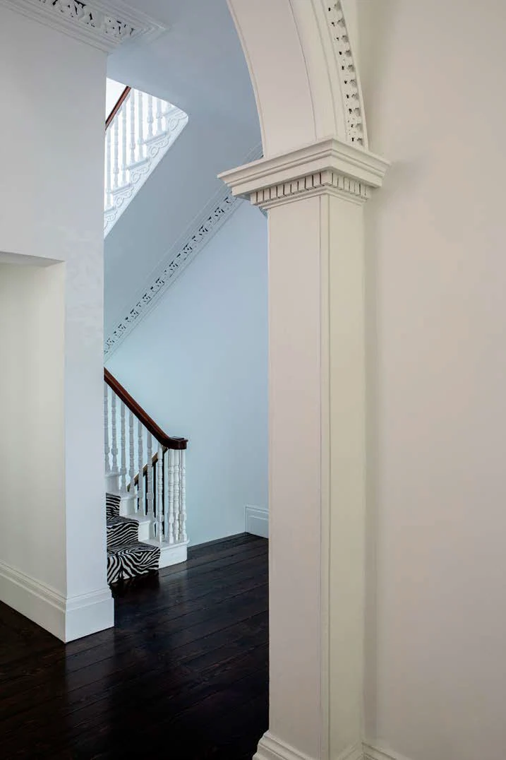 In the main hallway, the lift shaft that had been added cut through a decorative archway, but Colm and the team were able to visit neighbouring houses to help them see how it originally should have looked, which helped them restore it.